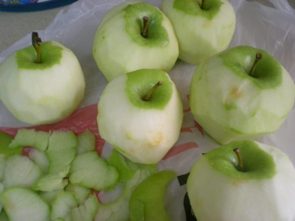 על איך שאני מקלפת וחותכת תפוחים אפשר לצלם סרט המשלב קצת מכל ז’אנר – דרמה, קומדיה, מתח, אקשן, אימה, הכל יהיה שם. בתפוח הראשון והשני הורדתי את רוב הפרי יחד עם הקליפה. בשלישי כבר הרגשתי שאני מתחילה להשתפר, וברביעי חלה רגרסיה. אחרי השישי נשמתי לרווחה ושמחתי שהפעם, דם לא היה חלק מהתהליך (גם צפרדע וכינים לא, למקרה שתהיתם), רק כמה שריטות קלות (אבל רחמים עצמיים בשפע. אתם צודקים, אני באמת גיבורה!). משלב זה ההכנה כבר היתה קלה למדי והתוצאה – מפתיעה מאד (לטובה, ברור).