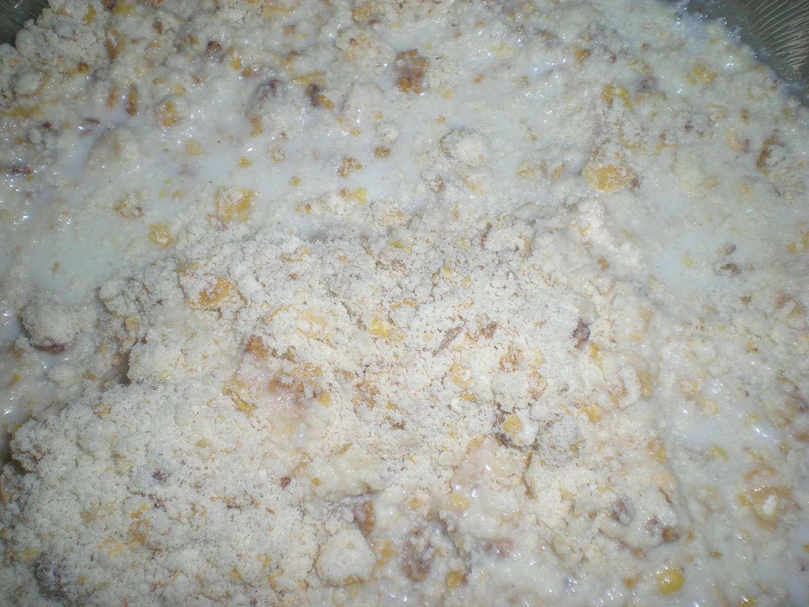 2. מערבבים קמח, קורנפלקס, סוכר (רק שתי הכפוות הראשונות), אבקת אפיה ומלח בקערה גדולה.