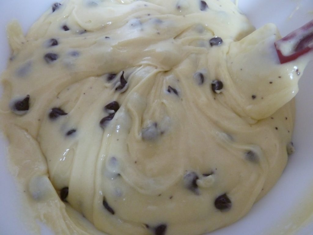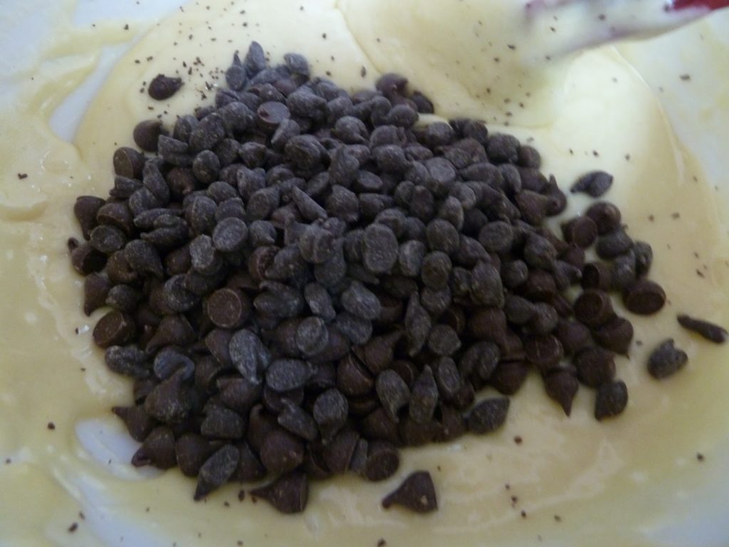 6. מוסיפים שוקולד צ’יפס ומקפלים פנימה בעדינות.