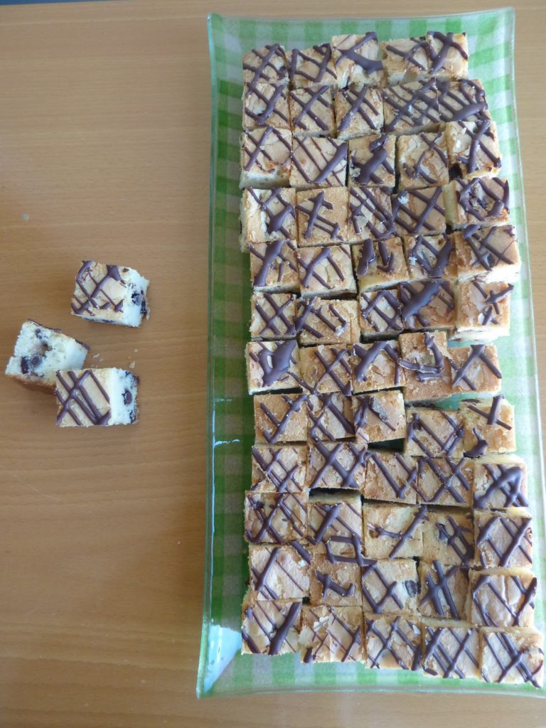 כמות: תבנית ריבועית עם צלע של 24 ס”מ, עדיף לרפד אותה בנייר אפיה שקצותיו בולטים החוצה. מבחינת כמות ביחידות, יצאו לי 81 קוביות קטנטנות, לא כולל שולי העוגה, שהסרתי ולא כללתי בספירה.