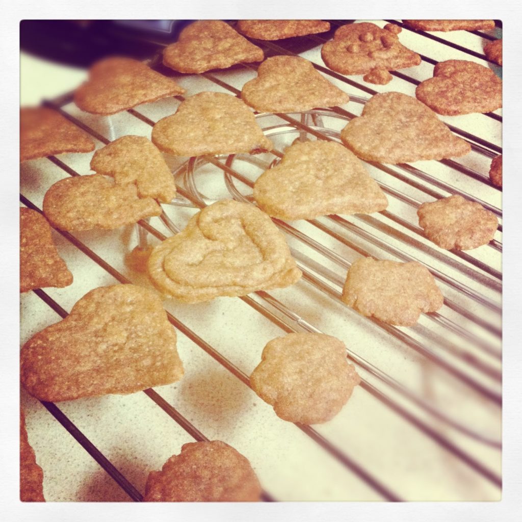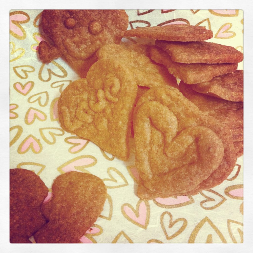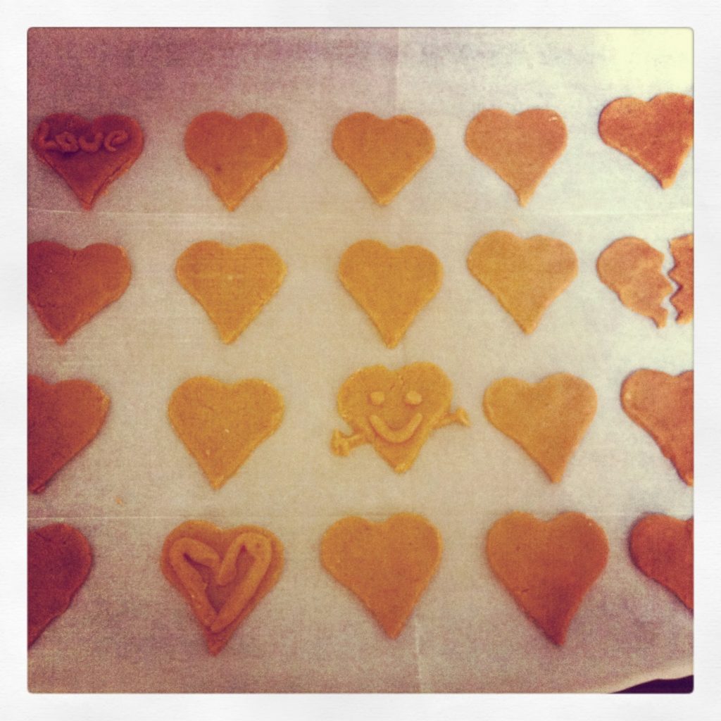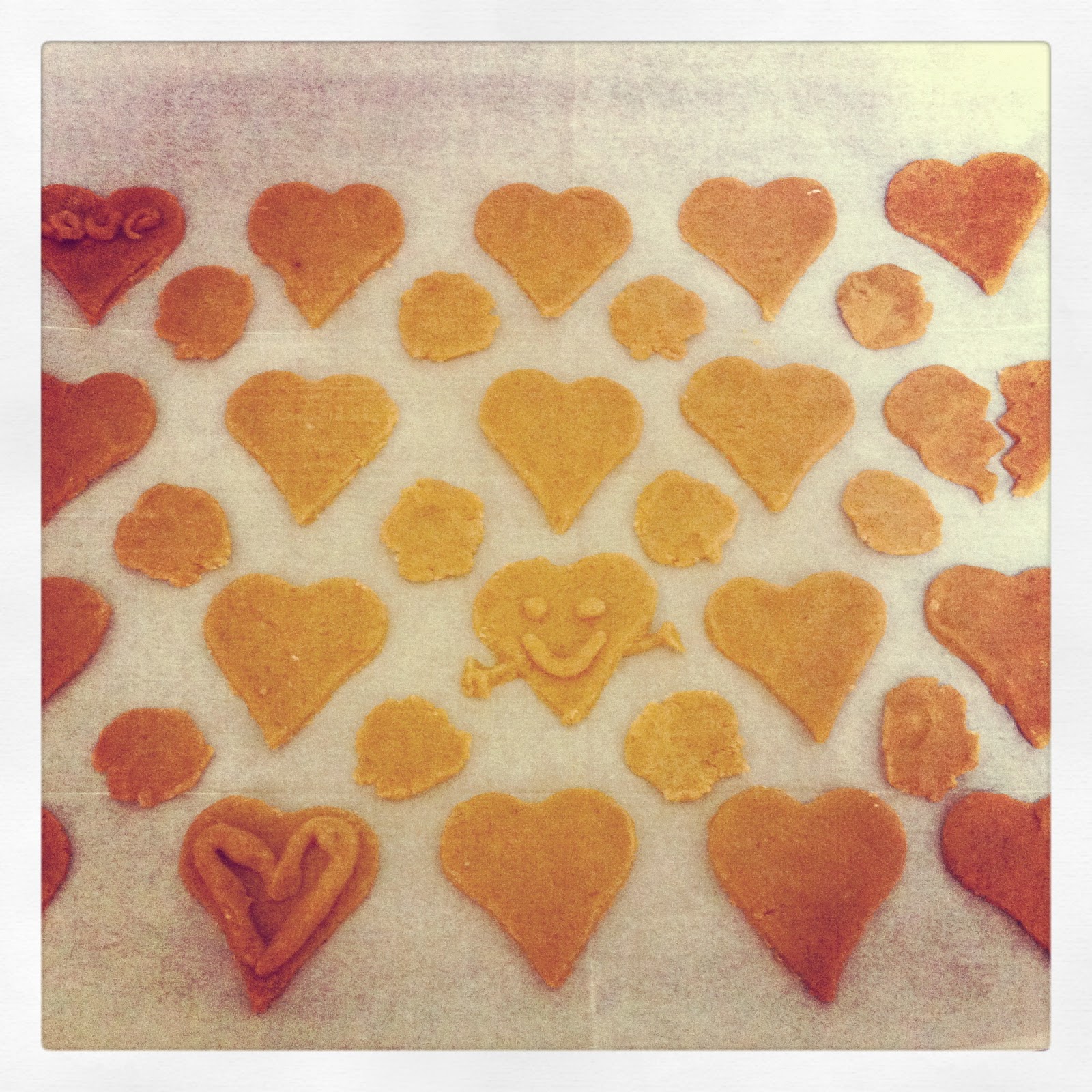 כמות: עשרים עוגיות בצורת לב ועוד שתים עשרה עוגיות סוג-של-עגולות קטנות. זה מה שיצא לי, בכל אופן. תלוי כמה דק אתם מרדדים.. איזה גודל העוגיות שלכם.. כאלה דברים.