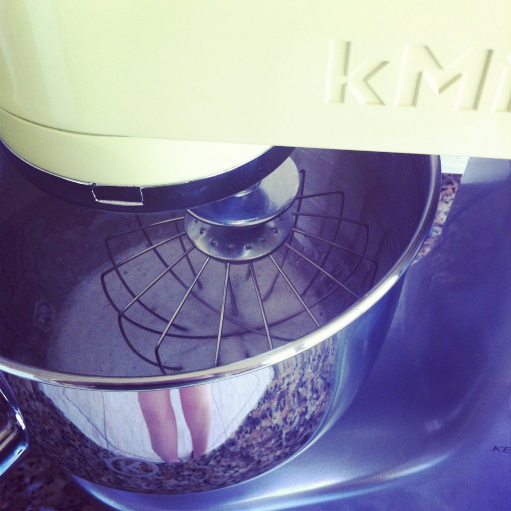 החסרון של מיקסר עם קערת מתכת: רגליים שמנמנות וחיוורות משתקפות בקערה יותר מדי טוב.