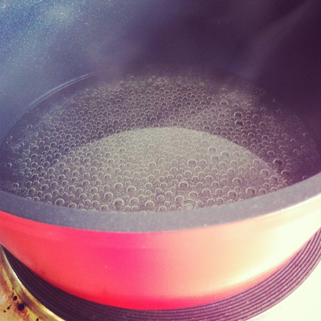 3. לוקחים סיר הקטן מעט בקוטרו מקערת החלבונים, ממלאים אותו במים – בערך עד החצי, אפילו קצת פחות – ומרתיחים.
