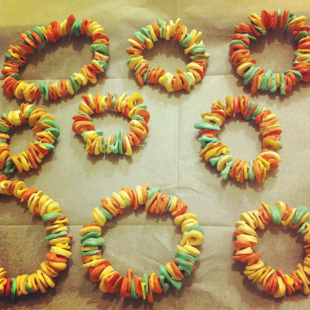 • מה שכן, כל האפיה והאפיה החוזרת לא עשו טוב לצבע של הסוכריות. כל עניין ה”קריספיות אך לא משחימות” פחות עבד לי, והצבעים היפים שלי קצת איבדו מהיופי שלהם. לא נורא, כשמשחילים את כל הצבעים השונים ביחד על חוט אחד ויוצרים צמיד, זה עדיין נראה טוב. אני רק אומרת – למדו מהטעות שלי. שמרו בקופסא אטומה, עבדו מהר, השחילו מהר, ואולי אל תחכו שבוע בין ההכנה להרכבה.