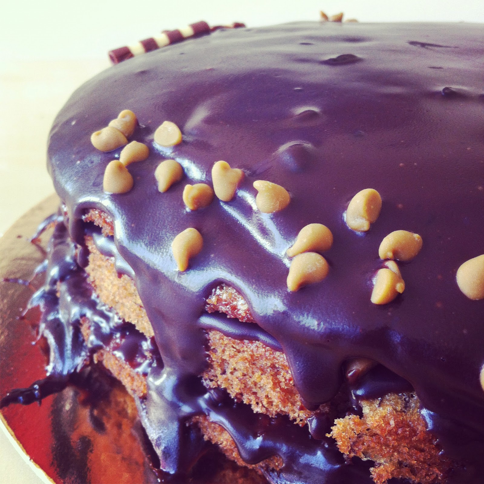 מקור המתכון: המתכון לעוגה הוא זה, של The Kitchn, מינוס הקרמל ובתוספת חמאת בוטנים במקום. הקרם הוא בעקרון הקרם הזה, של Brown Eyed Baker.