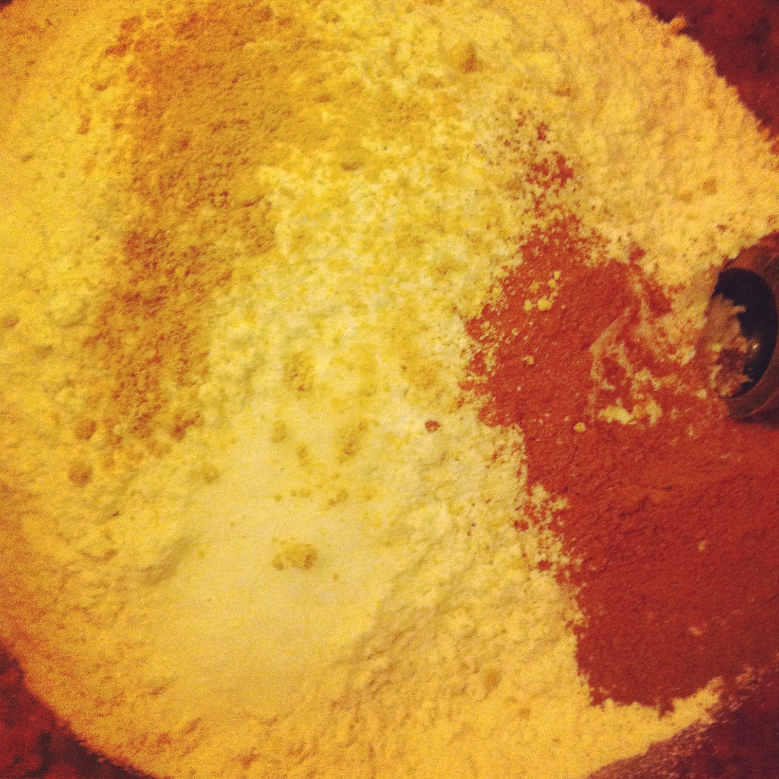 5. מערבבים חומרים יבשים – קמח, אבקת אפיה, קינמון, ג’ינג’ר ומלח בקערה. מניחים בצד.