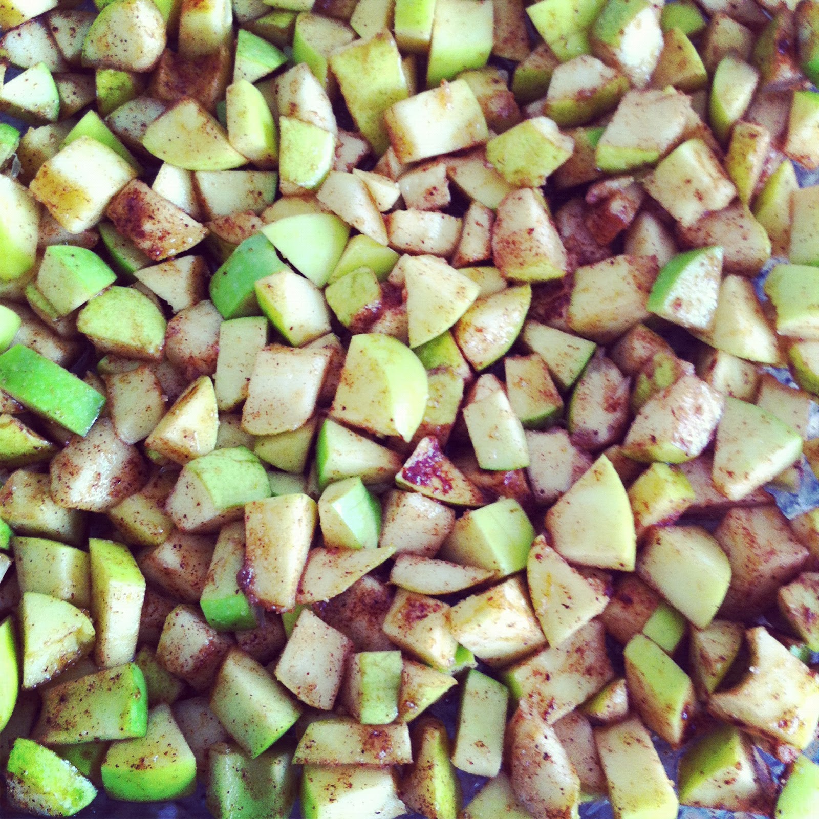 3 תפוחים (איזה סוג שבא לכם. שלי היו.. ירוקים. סליחה, זה לא מדויק – היו שניים ירוקים בהירים גדולים, ואחד ירוק טיפה יותר כהה ויותר קטן)