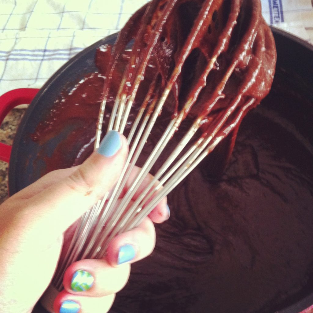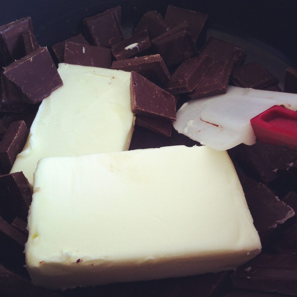 - לגבי כל עניין הבייגלה והשוקולד וזה – אני לא יודעת לומר כמויות, כי היו לי שאריות שוקולד בקערה מאלוהים-יודע-מתי. אז כשרציתי להמס את חמאת הבוטנים, פשוט הוספתי אותה לשוקולד וחיממתי. לא מדובר על כמות גדולה, כמה קוביות בסך הכל, נראה לי. כמובן שזה עניין של העדפה, אם בא לכם לשייש פנימה מלא שוקולד מומס, מגניב. הוסיפו עוד. רק לא יותר מדי, טוב? לא חצי קילו שוקולד, כי אז תקבלו שוקולד מומס עם פירורי בראוניז בפנים וזה… מוזר. אם כי מעניין. יודעים מה? נסו את זה בכל זאת. אני רוצה לשמוע!