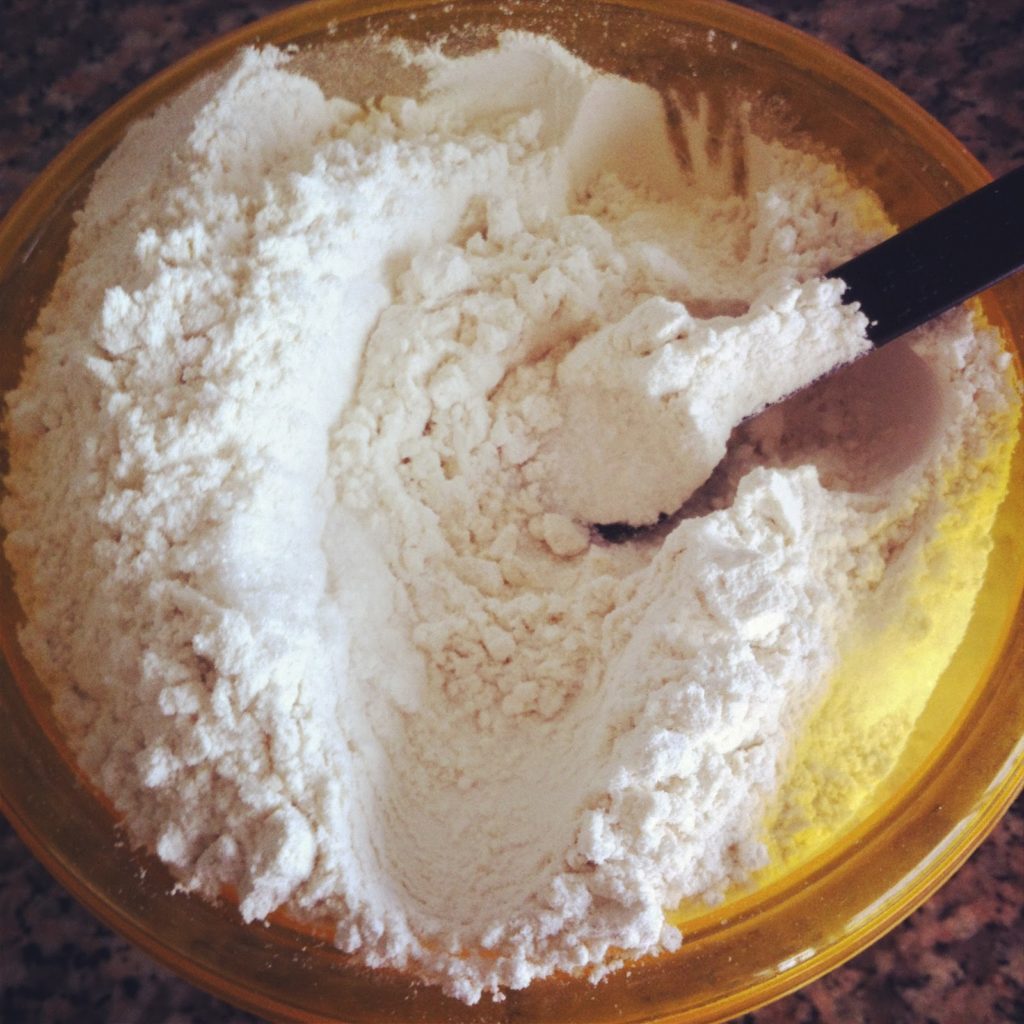 3. בינתיים מערבבים יחד, בקערה נפרדת, קמח, אבקת אפיה ומלח.