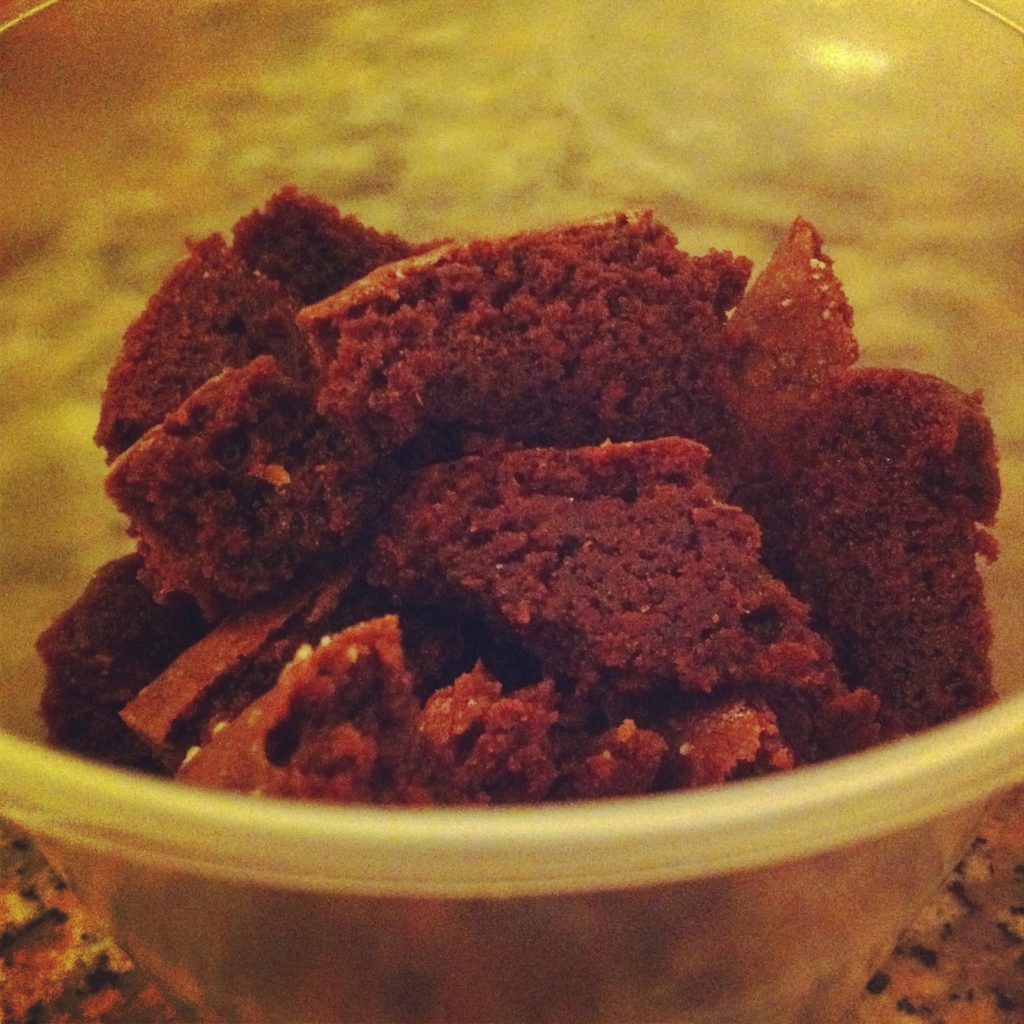 - וכדי לסיים את עניין התוספות, זה נכון גם לגבי פירורי הבייגלה. לי היתה כמות של שתיים-שלוש כפות פירורי בייגלה מלפני הרבה זמן – יותר מדי זמן – אז הוספתי אותה לבראוניז כדי להיפטר מהם, תכלס. אפשר פשוט לרסק רבע-חצי כוס של בייגלה ולהוסיף. תכלס, גם לא חייבים לרסק אותם לאבקה, כמו מה שהיה אצלי. נראה לי שיכול להיות מגניב לשבור אותם לחתיכות ולהוסיף לבלילה. ככה מקבלים גם טעם מלוח של בייגלה וגם מרקם, וופידו.