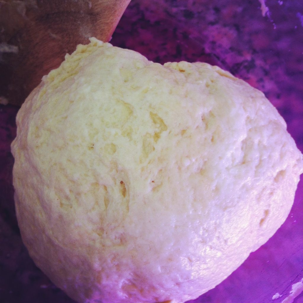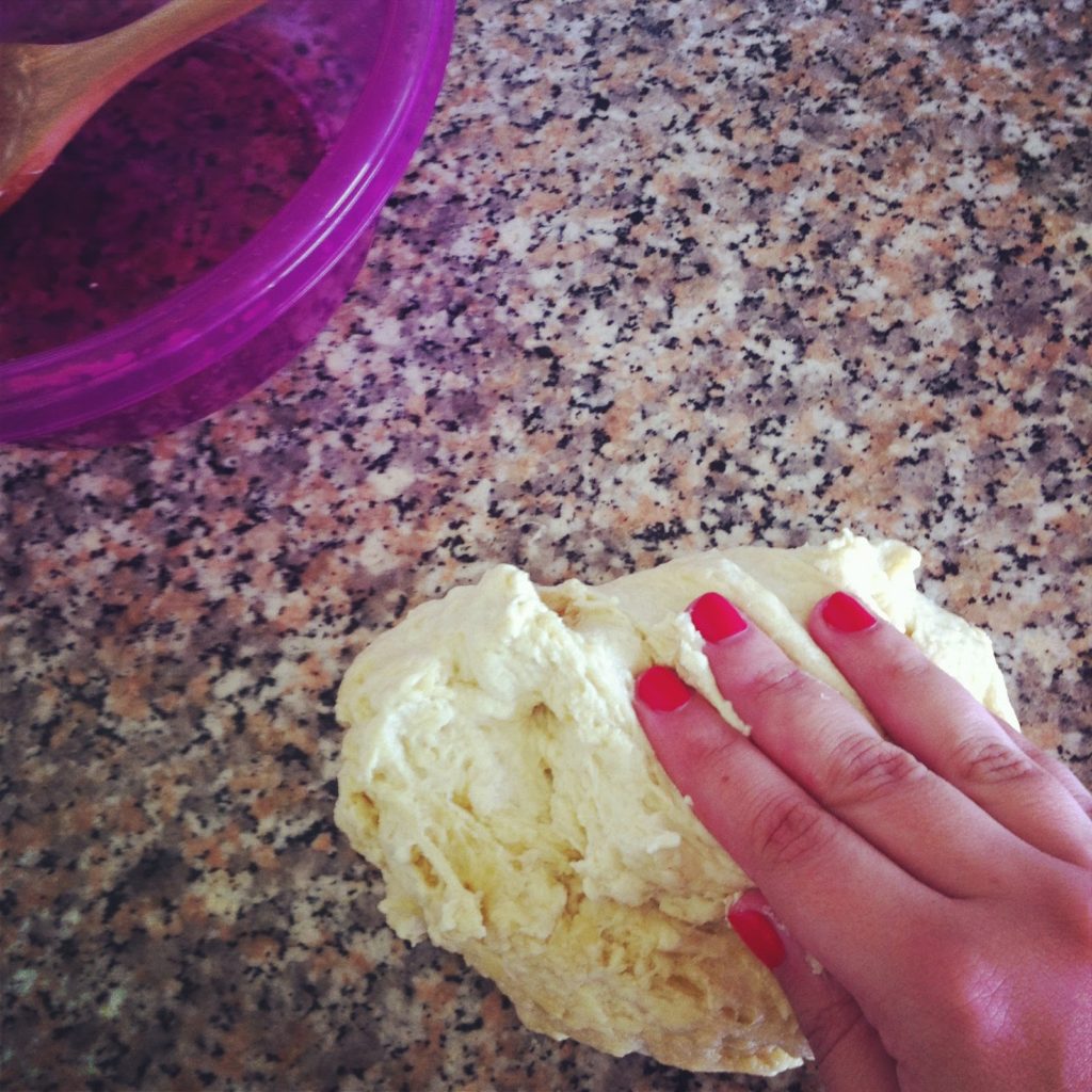 4. מעבירים את הבצק למשטח עבודה ולשים אותו מעט, עד להתאחדות.