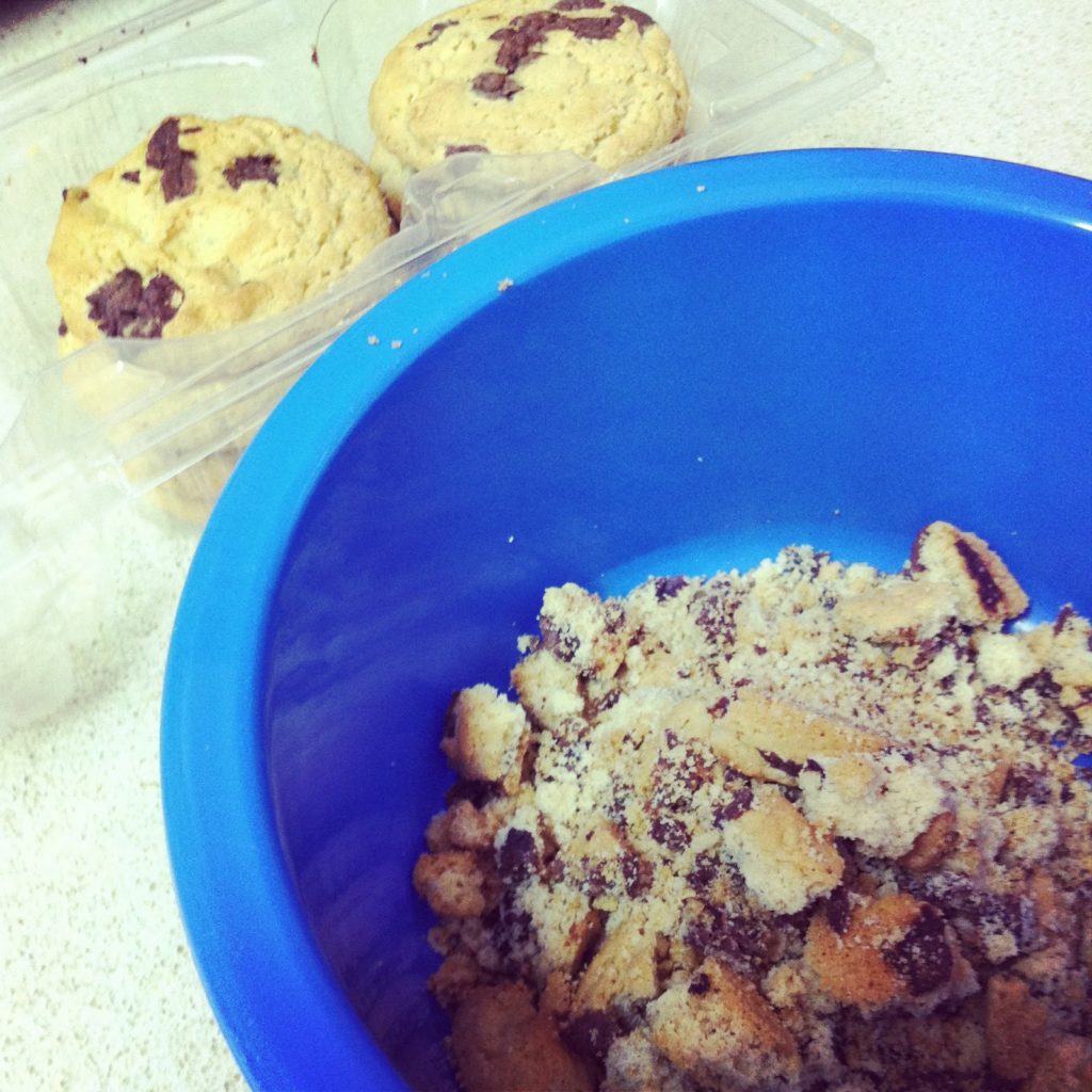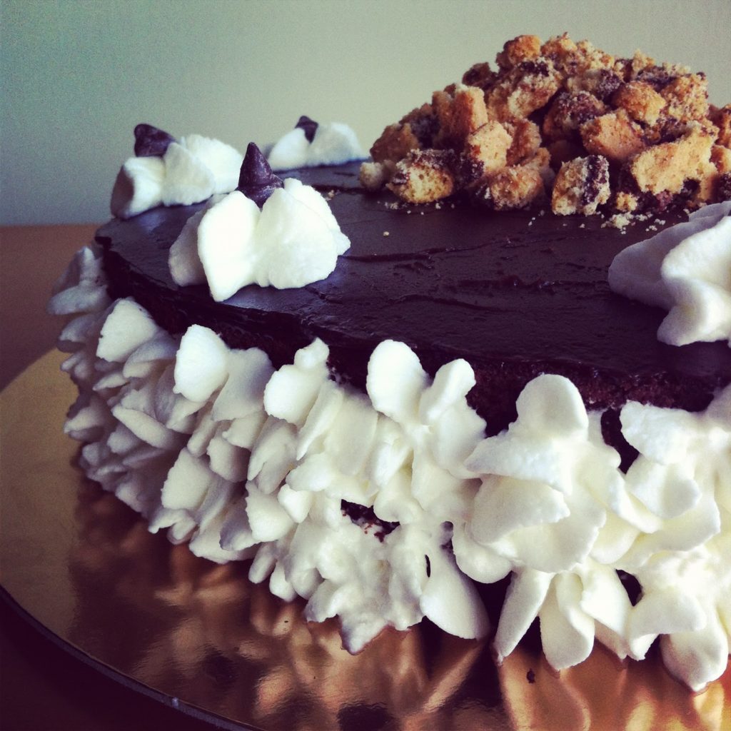 - אני השתמשתי בעוגיות שוקולד צ’יפס קנויות (של מילקה), אבל אפשר – ואפילו רצוי – להכין לבד. מצד שני, אם אין לכם כח.. זה בסדר להשתמש בקנויות. חוסך מלא זמן וזה לא שהעוגיות מאד דומיננטיות בעוגה.