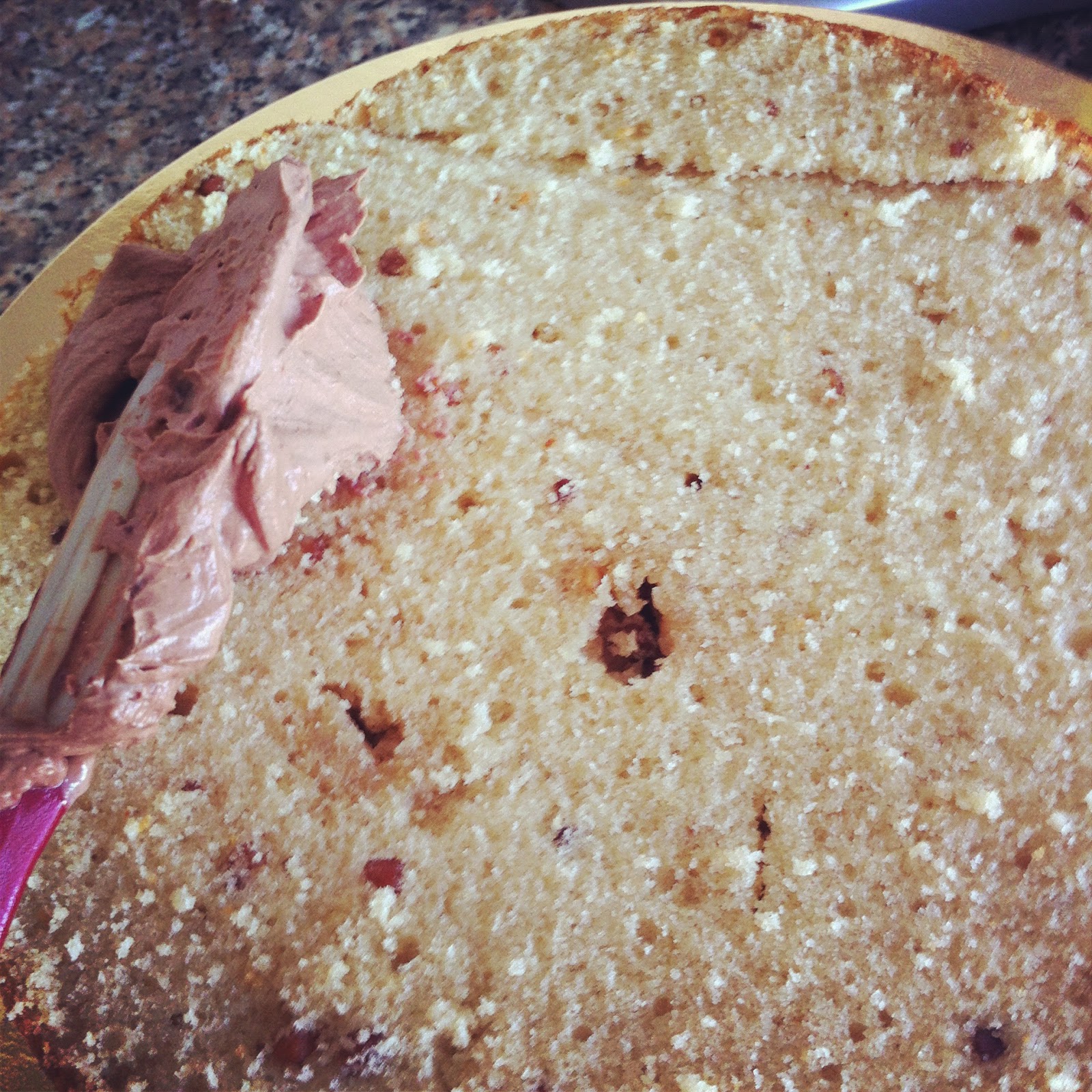 18. מוציאים את העוגה מהמקרר ומורחים שכבה נוספת של קצפת – הפעם משקיעים, כדי שהציפוי יהיה חלק וייראה טוב 🙂