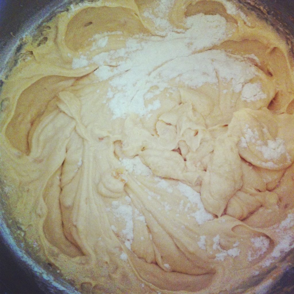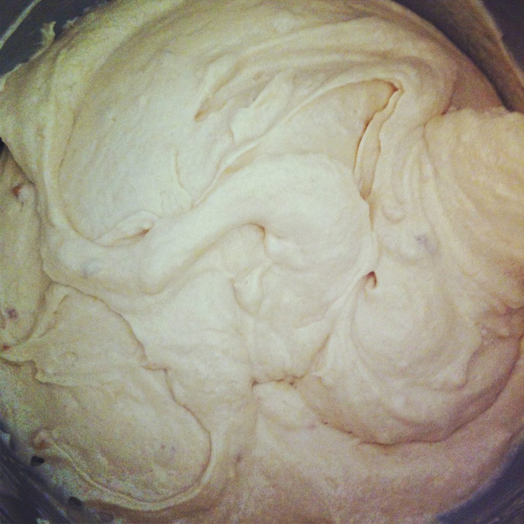 10. מנמיכים את מהירות המיקסר ומוסיפים את תערובת היבשים ואת החלב לסירוגין: שליש קמח, חצי חלב, שליש קמח, שאר החלב, שאר הקמח. בין לבין מערבבים עד להיטמעות.