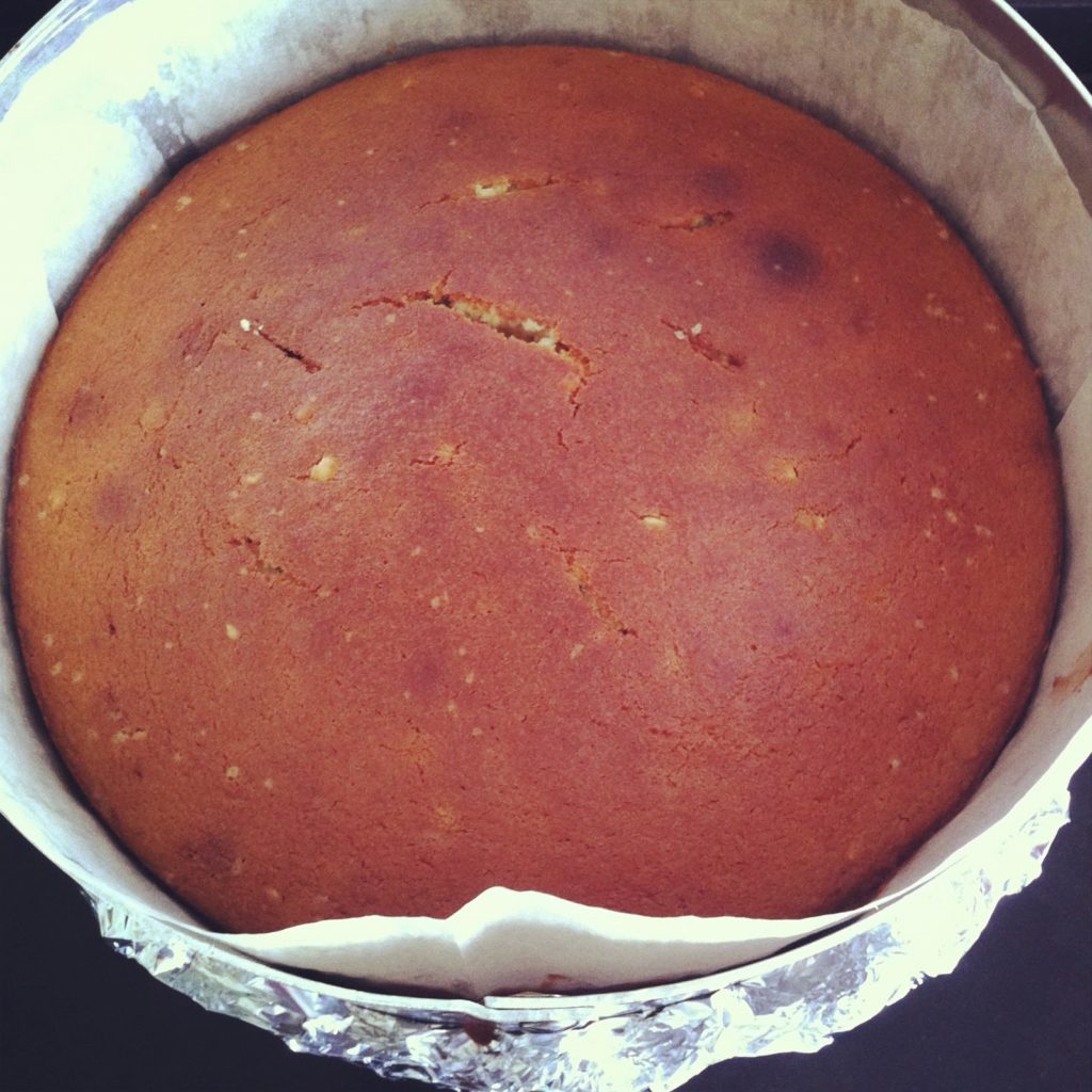 12. יוצקים לתבנית ואופים עד להזהבה, 30-45 דקות. מצננים לגמרי. חשוב לעקוב אחר העוגה: אני סובבתי את העוגה שלי לאחר רבע שעה ולאחר רבע שעה נוספת הנמכתי את החום לכ-160 מעלות, כיוון שהיא השחימה אך עדיין לא היתה אפויה בפנים. בסך הכל אפיתי 45 דקות.