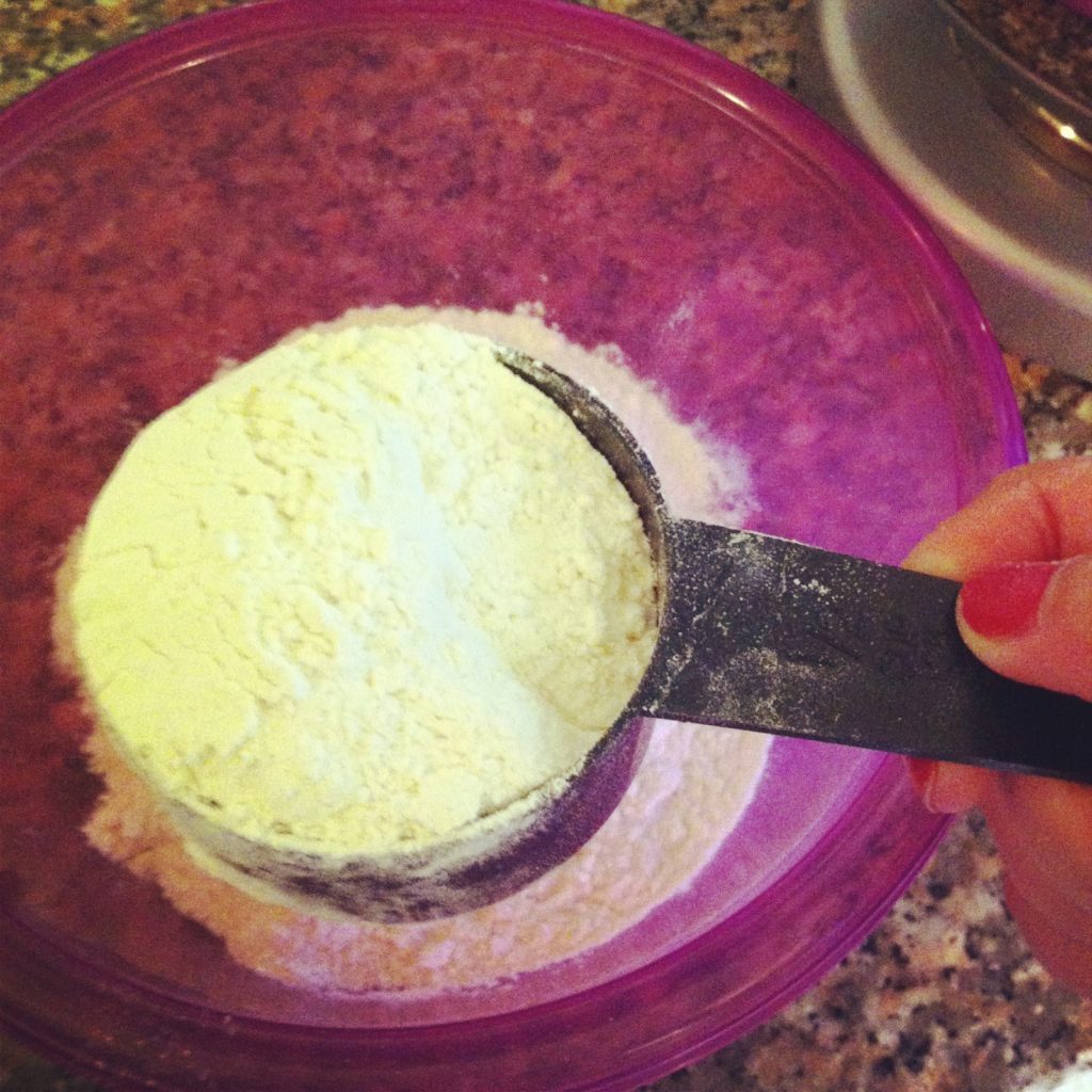 6. טורפים קמח, אבקת אפיה ומלח בקערה. מניחים בצד.