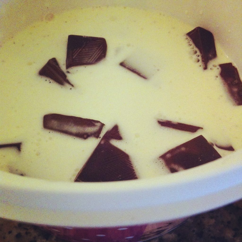 1. מתחילים בהכנת הקצפת: קוצצים גס שוקולד ומניחים בקערה.