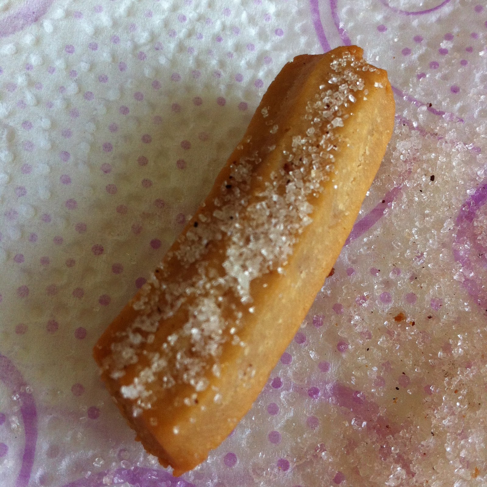 קיצור, אני אחסוך לכם את כל הפרטים והתלאות, אבל הצ’ורוס כשלו כשלון חרוץ. קודם כל, היינו צריכות לחכות שהשמן יתקרר בחזרה לטמפרטורה הרצויה (ואז הוא התקרר יותר מדי. ואז התחמם שוב מדי. ופשוט סרב להתייצב, כי הוא בלתי נסבל). ואז זרקנו פנימה צ’ורו אחד לבדיקה. הוא השחים ממש מהר (טוב, האמת היא שטיגנו אותו לפני שהשמן התקרר), אבל לא נעשה מבפנים. חצינו אותו לשניים, כל אחת טעמה חצי, הסכמנו שהצ’ורו לא עשוי אבל הטעם טעים. המשכנו.