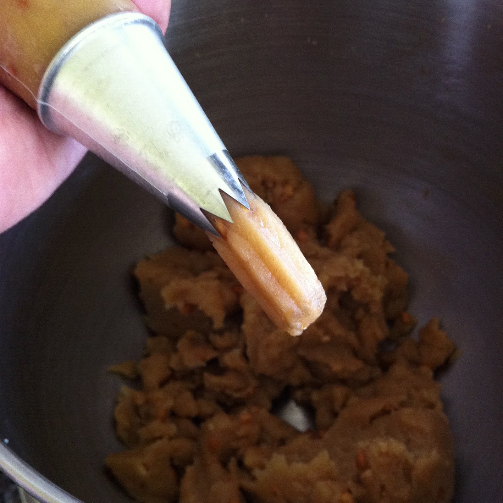 הכנו בצק רבוך לצ’ורוס. הרתחנו מים, חלב, סוכר, מלח, חמאת בוטנים ומעט חמאה (הדר התקשתה לוותר על החמאה altogether). הוספנו קמח. בישלנו. העברנו למיקסר וקיררנו קיררנו קיררנו. הוספנו ביצים. קיבלנו בצק בצבע מהמם וטעם חמאת בוטנימי עדין אך טעים. התעלמנו (בעיקר אני,  מודה ומתוודה) מהעובדה שהבצק שלנו הרבה בצקי יותר ממה שהוא אמור להיות. דומה באופן חשוד לבצק של הלחמיני חמאת בוטנים שטל ואני הכנו לא מזמן.
