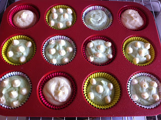 ובכן, כעבור שבועיים, אולי שלושה, ניגשתי שנית למלאכה. וראו זה פלא, גם הפעם קיבלתי תבנית שלמה של קאפקייקס בהירים בהירים, די אחידים בצבעם. צבעם, אגב, היה ירקרק חולני. לא בדיוק מה שרציתי.