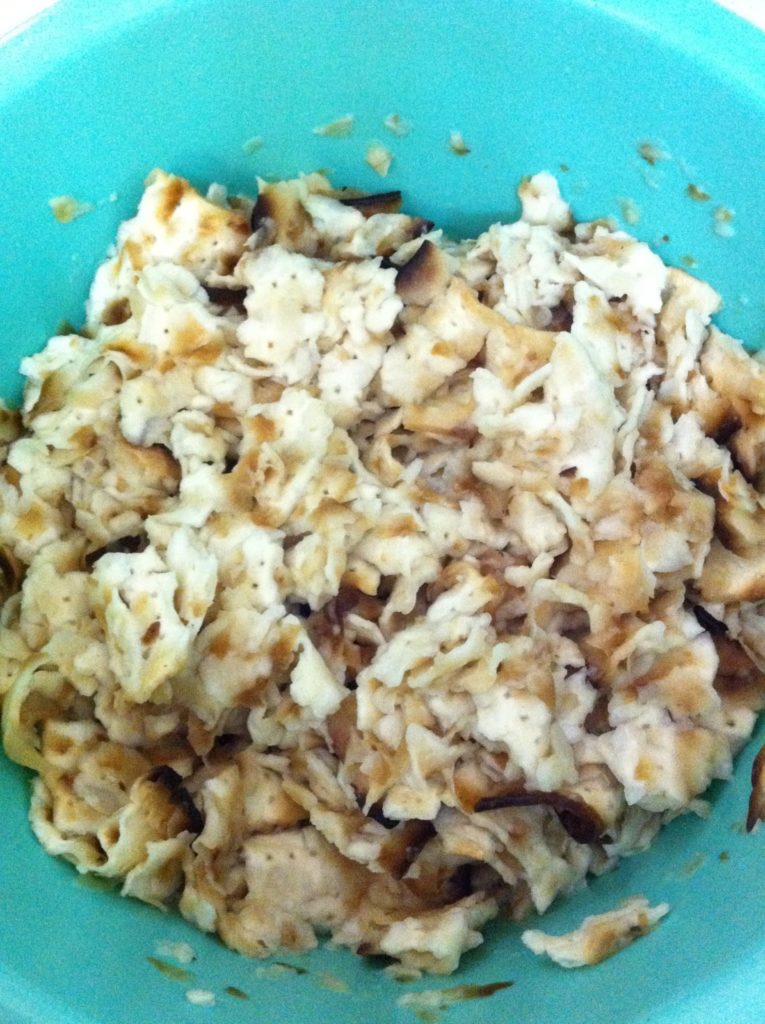 • אם אתם מצליחים להתאפק ולא לאכול חצי מהמצות הטבולות במים רותחים במהלך עשר הדקות שהן עומדות בצד, כל הכבוד לכם. אני נופלת כל פעם מחדש ואוכלת מלא מצות רטובות. האם זה סותם לי את התאבון ומפריע לי לאכול את פרוסת המצה בריי שלי אחר כך? ממש. הצחקתם אותי. הייתי אוכלת גם אתכם אם הייתם מציגים את עצמכם בתור “שם פרטי מצה, שם משפחה בריי“.