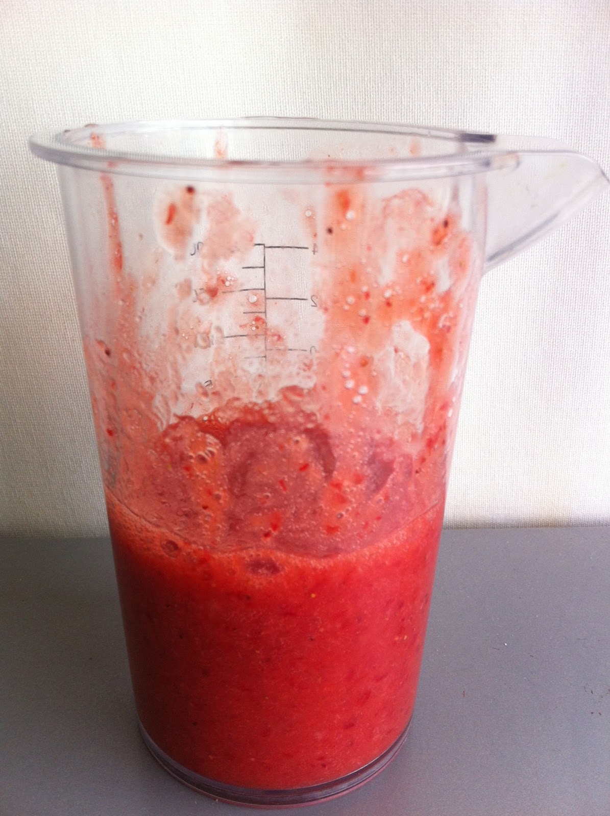 אז הכנתי שייק תות-בננה-תרד. ועוד אחד. ועוד אחד. היה טעים. אבל התותים שלי סרבו להיגמר. לכן הייתי צריכה להכין איתם משהו. לא היתה ברירה. כאמור, אני לא אוכלת דברים עם חתיכות של תותים, אז ידעתי שאני צריכה להכין משהו עם מחית תותים.