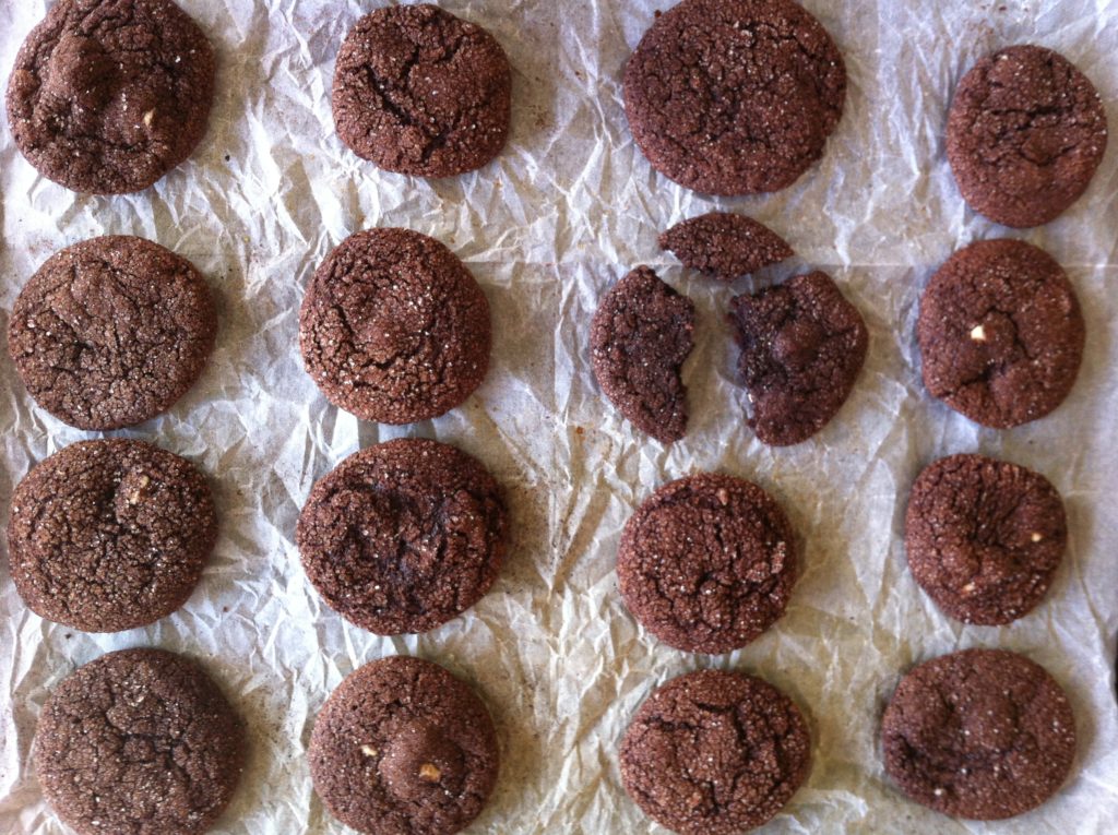 קיצור, בהתחלה תכננתי לקרוא לעוגיות האלה “עוגיות שוקולד וקינמון עם לב של זהב”. את החלק של “עוגיות שוקולד וקינמון” בשם כולם מבינים, כן? יופי. למה “עם לב של זהב”? כי הן – לפי ההערות שכתבתי לעצמי על המתכון – קריספיות ומתפצפצות מבחוץ, רכות וצ’ואיות מבפנים.