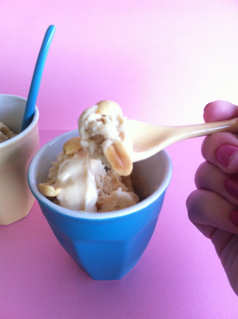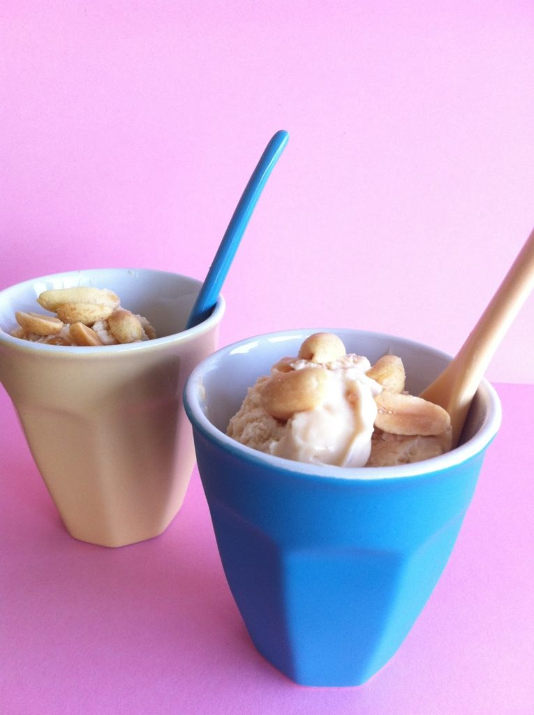 לגבי הגלידה – אם אין לכם כח, אפשר לקנות גלידת חמאת בוטנים או לקנות גלידת וניל, להמס אותה קצת ולערבב פנימה חמאת בוטנים… אבל זה יקח בערך אותה כמות זמן כמו להכין את הגלידה לבד: