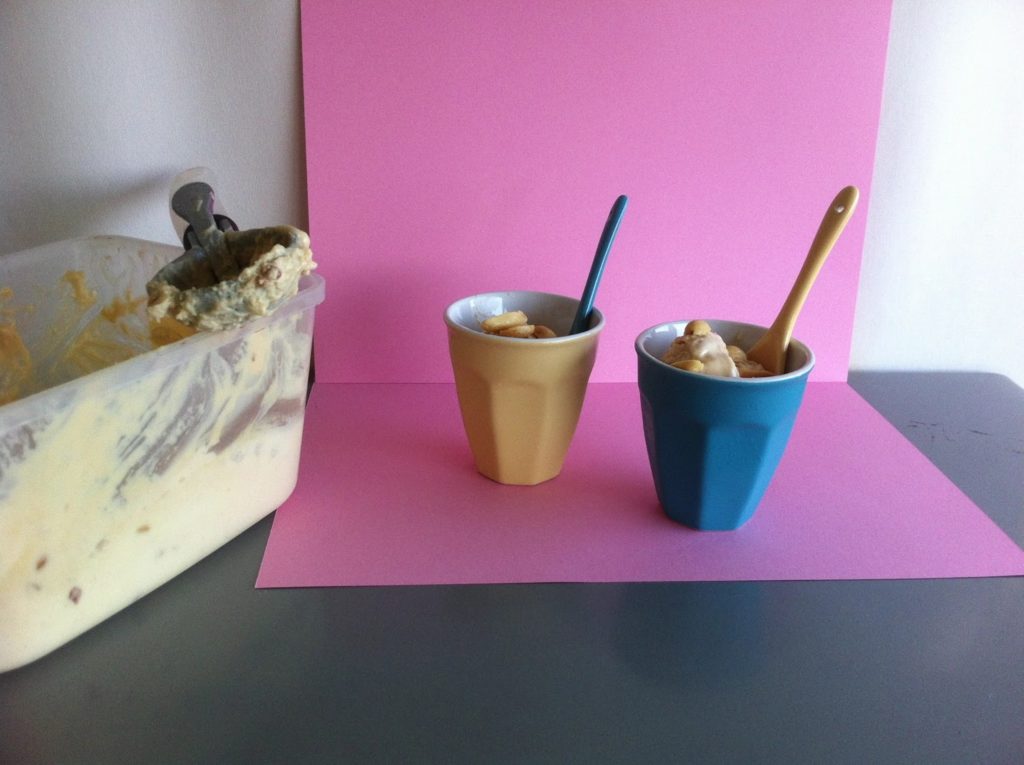 הוספתי בבסיס רבע כפית ריבת חלב לכל אחד, שמתי מלח בגלידה (כמוך…) ופיזרתי מעל הגלידה קצת קורנפלקס בציפוי באטרסקווץ קרנצ'י (תוצרת בית…)