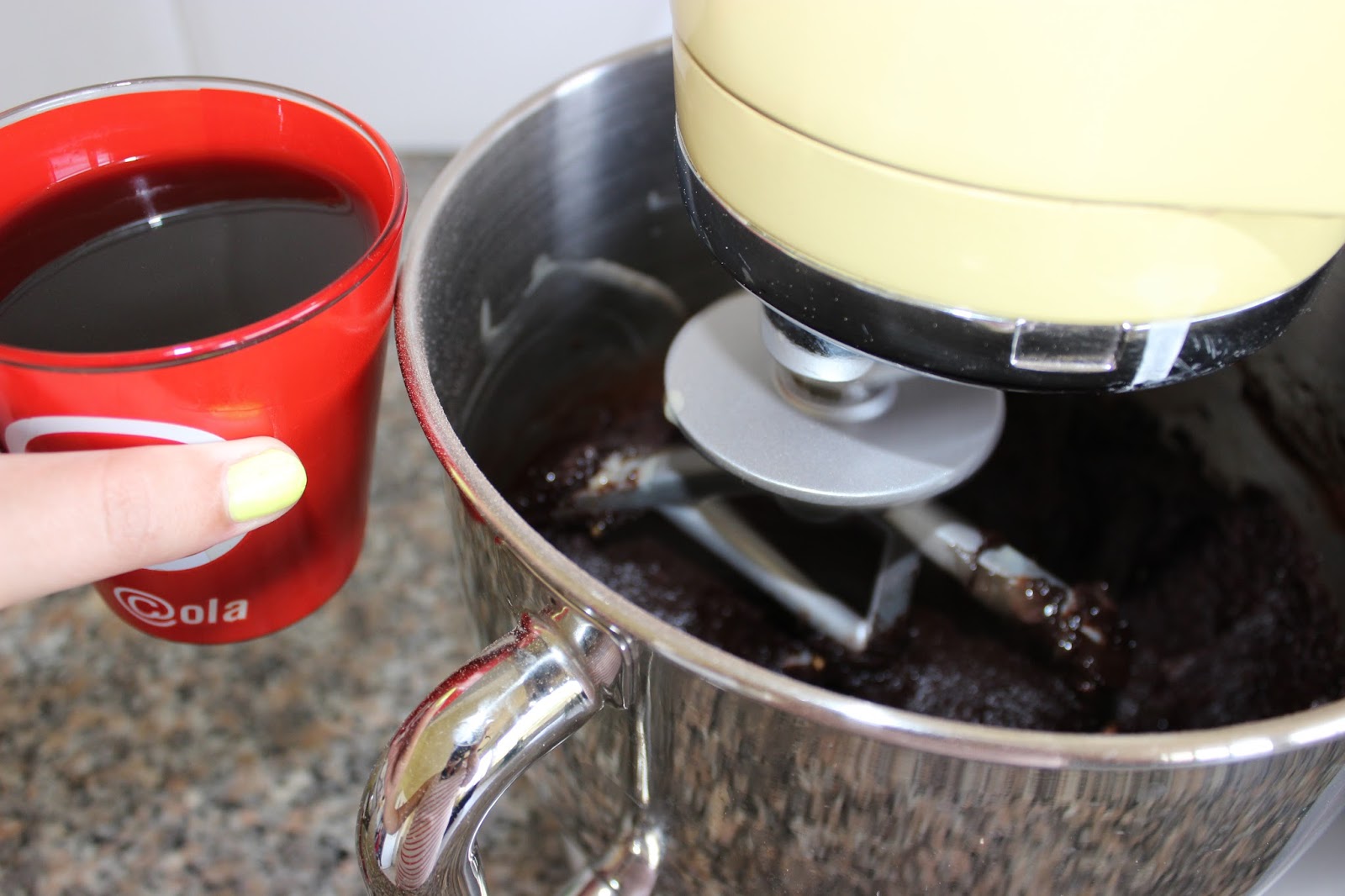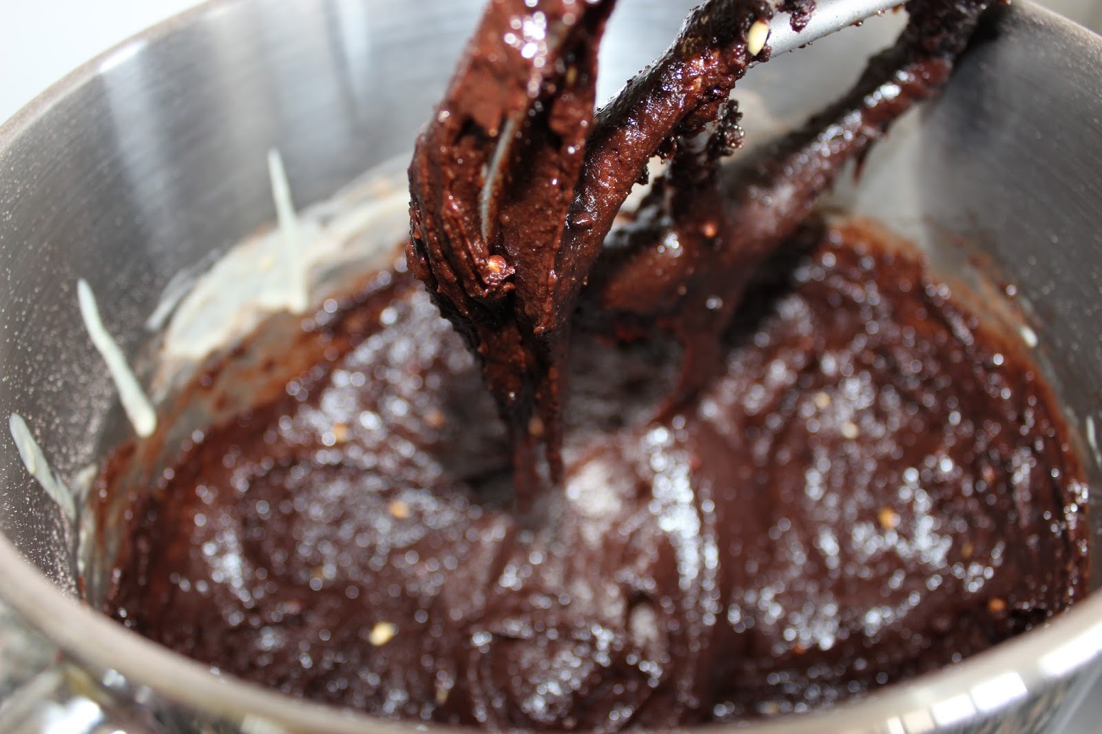 5. משאירים את המיקסר פועל על מהירות איטית ומוסיפים קפה בהדרגה, תוך כדי ערבוב. מערבבים רק עד לקבלת בלילה אחידה.