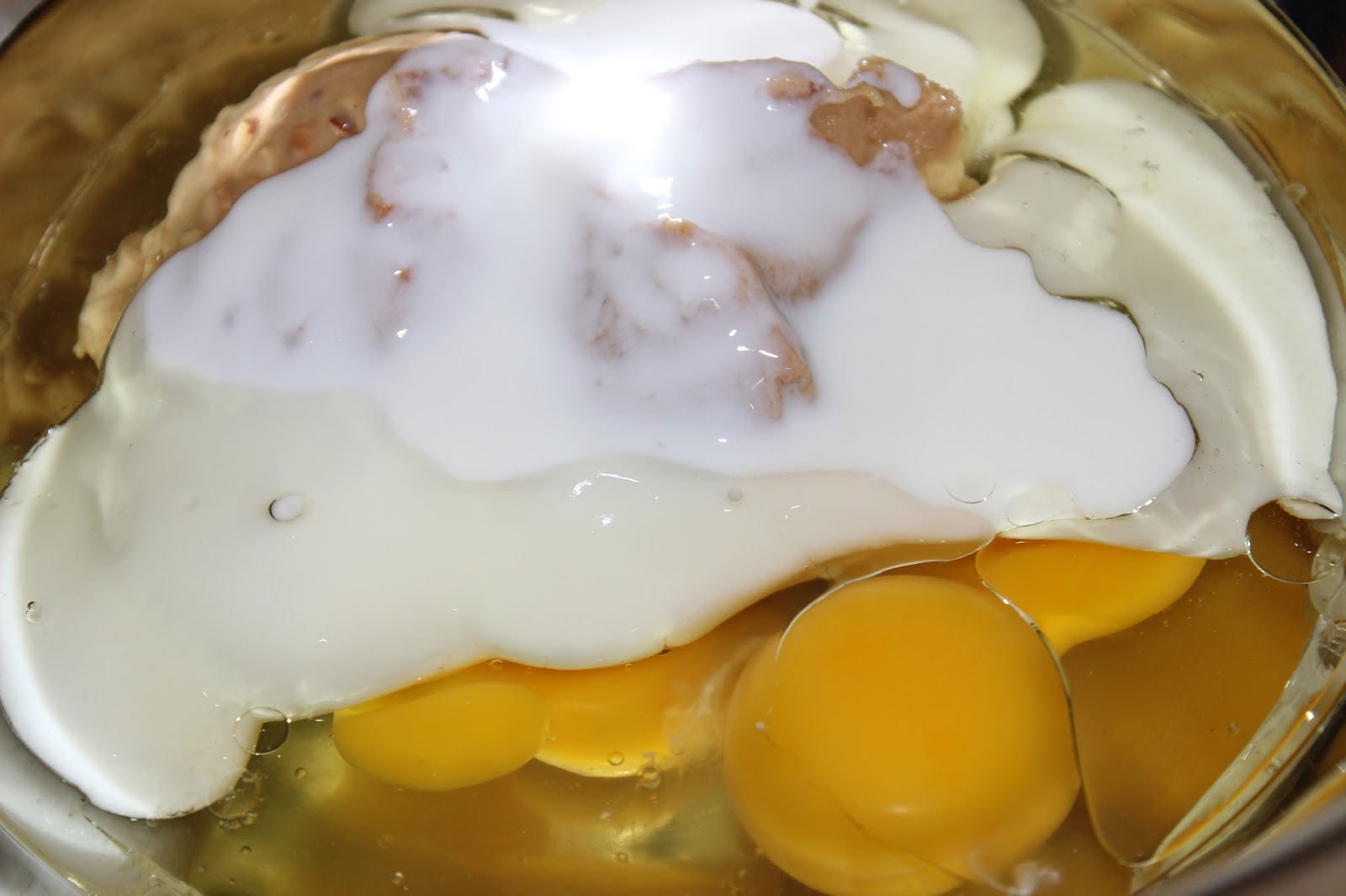 3. בקערה נפרדת טורפים רוויון, שמן, ביצים וחמאת בוטנים.