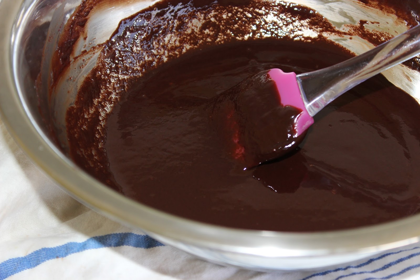 14. כאשר השמנת מגיעה לרתיחה, יוצקים מעל השוקולד. ממתינים שלוש-ארבע דקות ומערבבים, עד לקבלת קרם חלק.