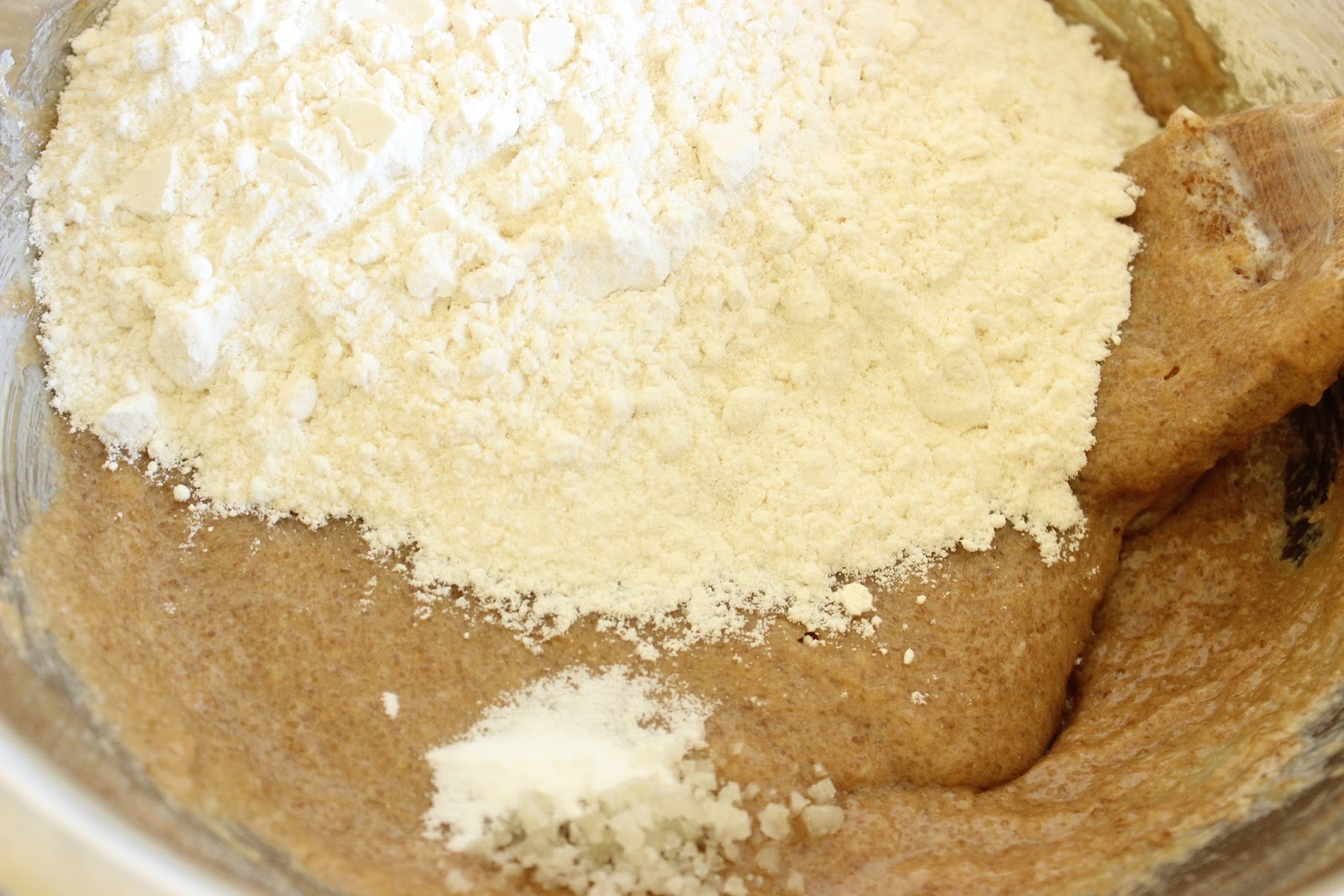2. מוסיפים קמח, סודה ומלח. מערבבים היטב עד לקבלת בצק.