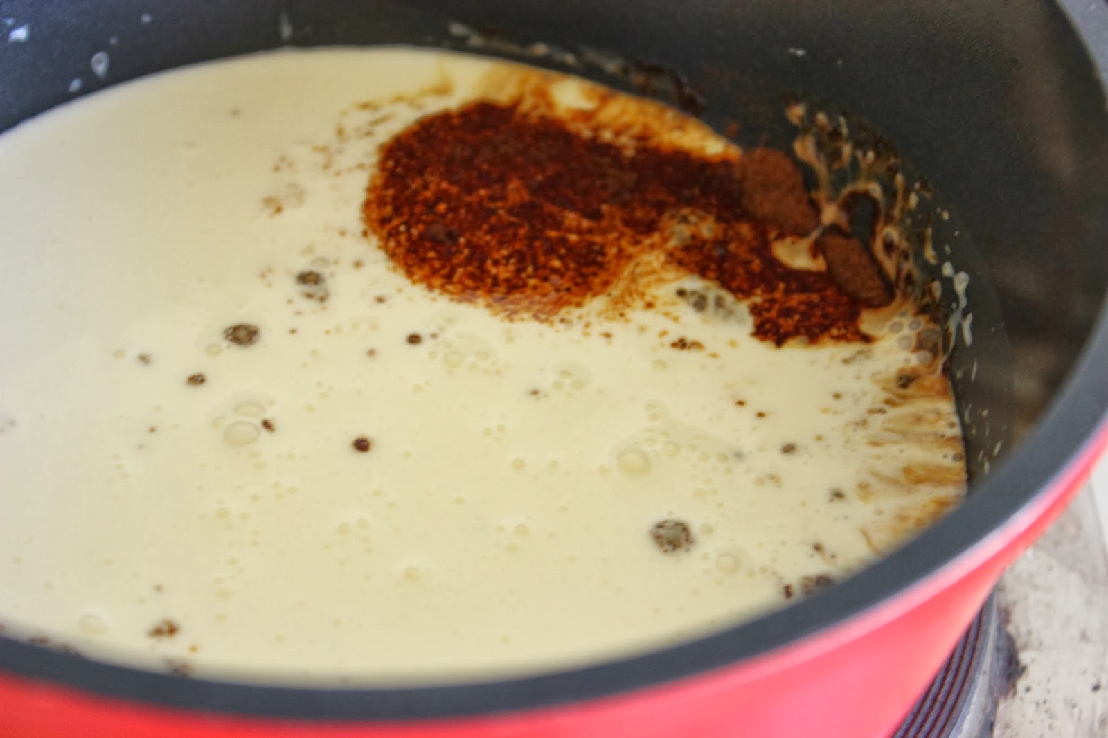2. מניחים מיכל אחד (250 מ”ל) של שמנת בסיר קטן יחד עם נס קפה. מבשלים עד להגעה לסף רתיחה.