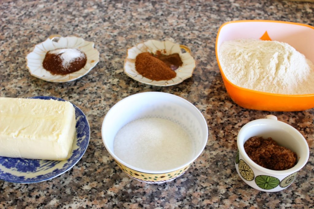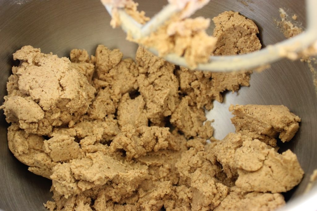 5. מוסיפים קמח, קינמון, אגוז מוסקט, נס קפה ומלח (אל תוותרו על המלח!). מערבבים על מהירות נמוכה-בינונית עד לקבלת פירורי בצק גדולים. מדי פעם מנקים את דפנות ותחתית הקערה, על מנת לוודא שהכל מתערבב יחדיו.