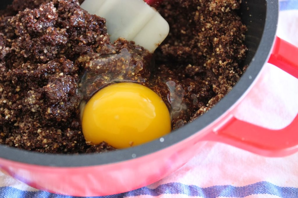 8. מוסיפים ביצה ומערבבים עד לקבלת בלילה אחידה.