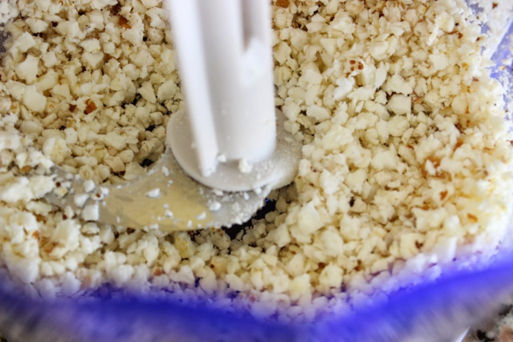 5. להכנת העוגה: טוחנים פופקורן לפירורים במעבד מזון (היו רגועים, גם ה”מעבד מזון” של הבלנדר מוט עושה את העבודה).
