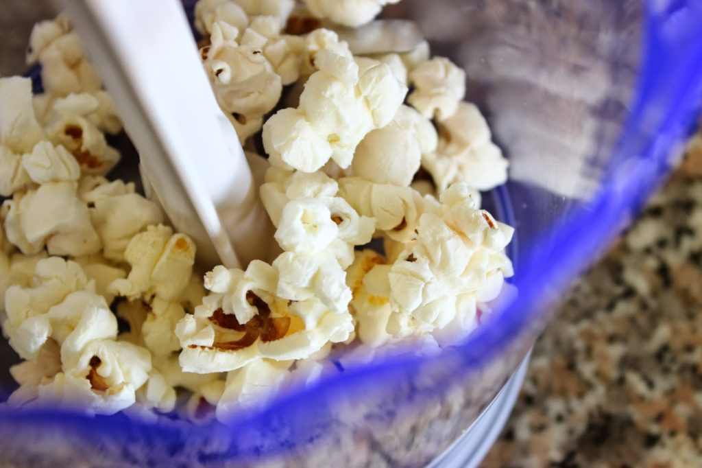 אוקיי. רעיון טוב. נעשה את זה. אוי, יש מלא פופקורן. כאילו.. ממש מלא. מי ידע שחמישה גרם זה המון פופקורן? טוב, עזבי – שימי רק פופקורן בבלילה, אין צורך בקמח תירס.