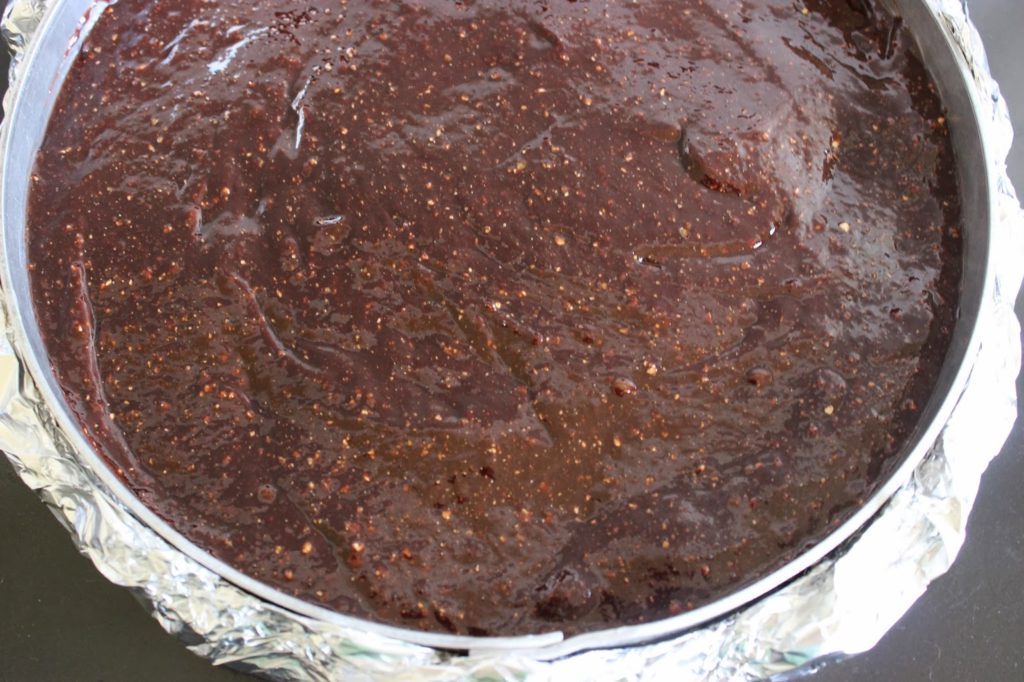 9. מעבירים את בלילת הצ’ואיז לתבנית. מיישרים ואופים למשך כחמש עשרה דקות, עד שהמאפה מתייצב וקיסם הננעץ במרכזו יוצא נקי, או כמעט נקי. מצננים לגמרי ומחלצים מהתבנית.