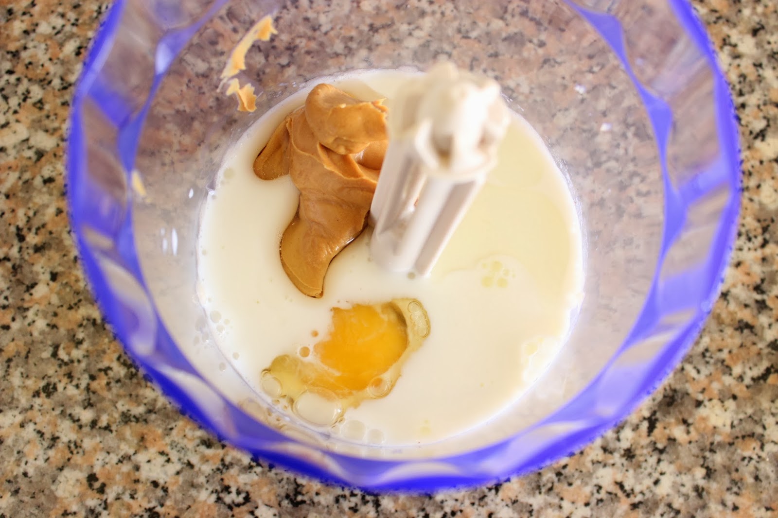 2. מוסיפים שמן, חמאת בוטנים, ביצה וחלב. מעבדים שוב עד לקבלת תערובת אחידה וחלקה.