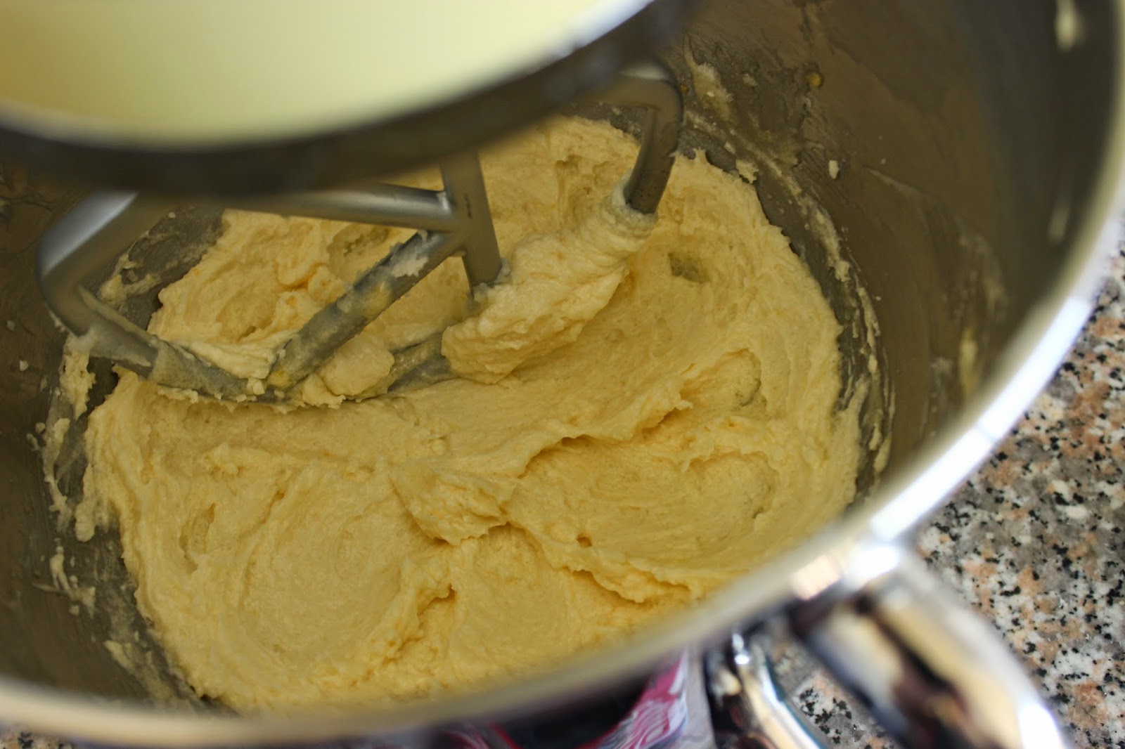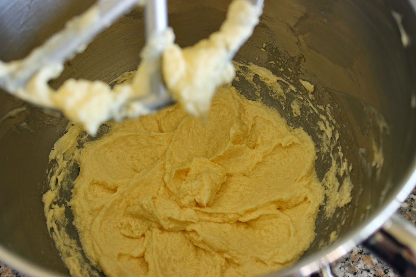 2. מניחים חמאה וסוכר בקערת המיקסר. מחברים וו גיטרה ומקרימים למשך שלוש-חמש דקות על מהירות בינונית, עד לקבלת תערובת בהירה ותפוחה.
