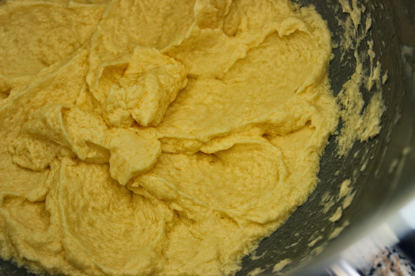 7. כאשר מתקבלת בלילה אחידה שבא לכם לקפוץ ראש לתוכה, מקפלים פנימה עם לקקן סוכריות עוגה (אפשר גם עם הפעלה קצרה ואיטית של המיקסר).