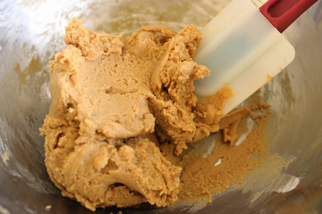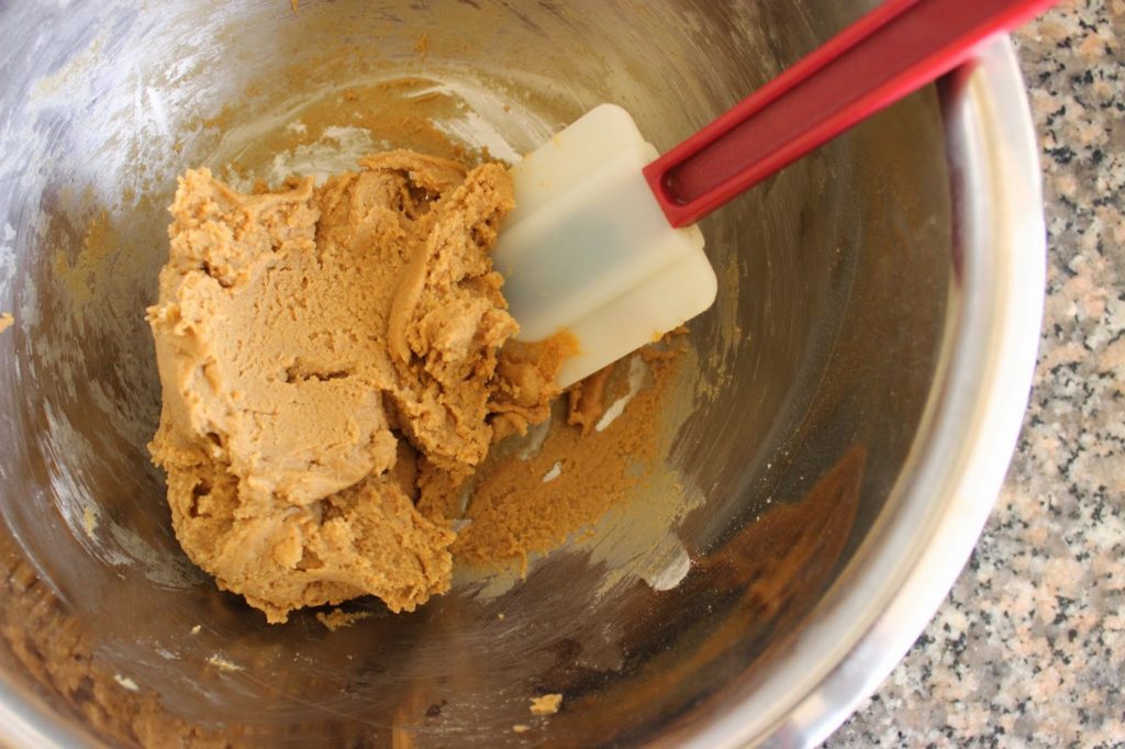 2. מערבבים את כל החומרים – חמאת בוטנים, סודה, קמח, מלח, מייפל ושמן קוקוס – בקערה, עד לקבלת בצק.