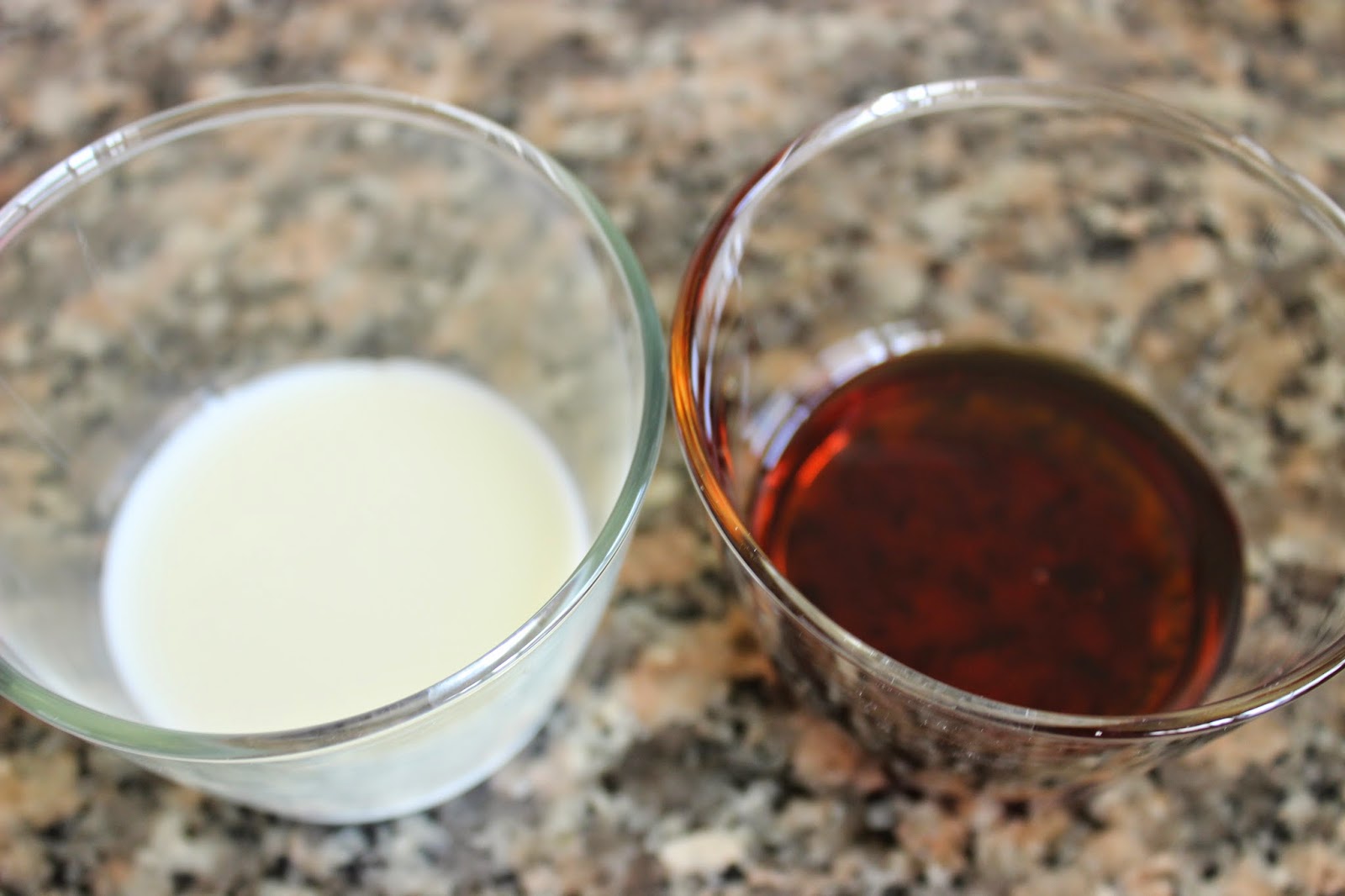 3. מוסיפים לחמאה החומה סירופ מייפל ומערבבים היטב. מצננים מספר דקות.