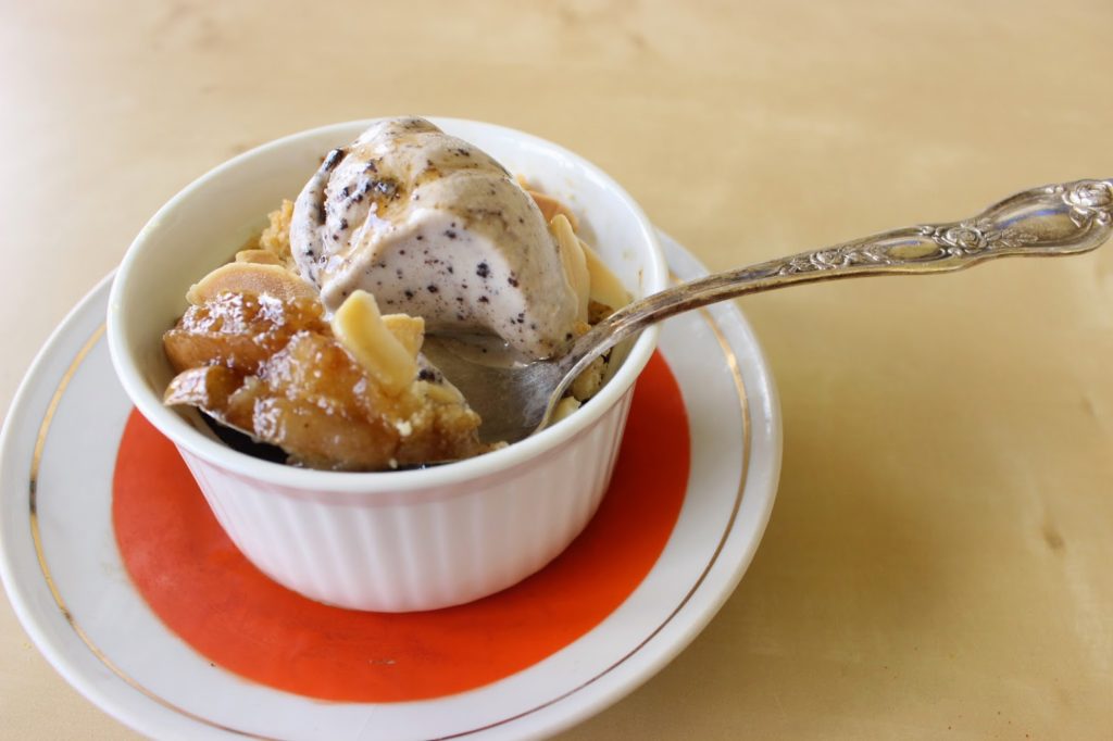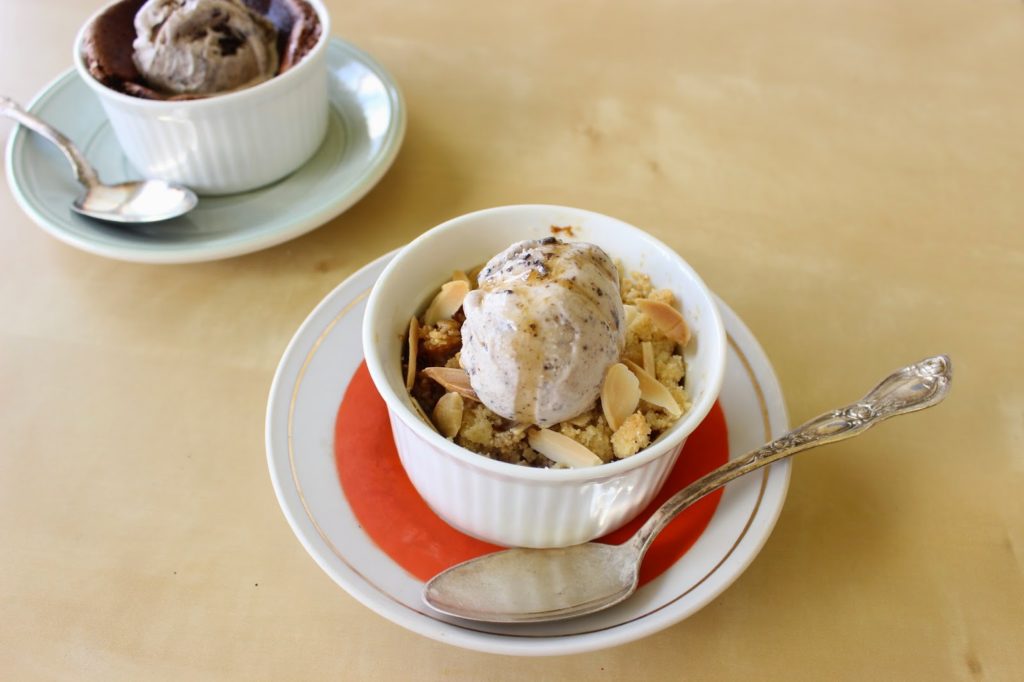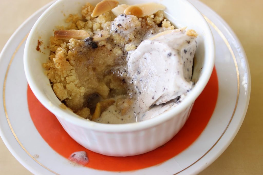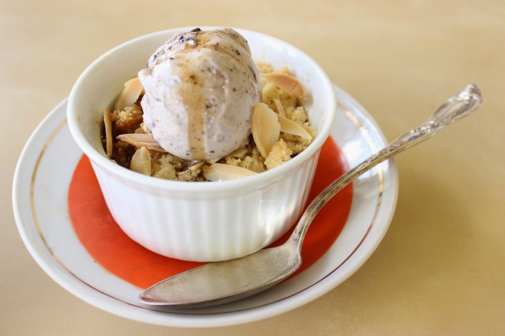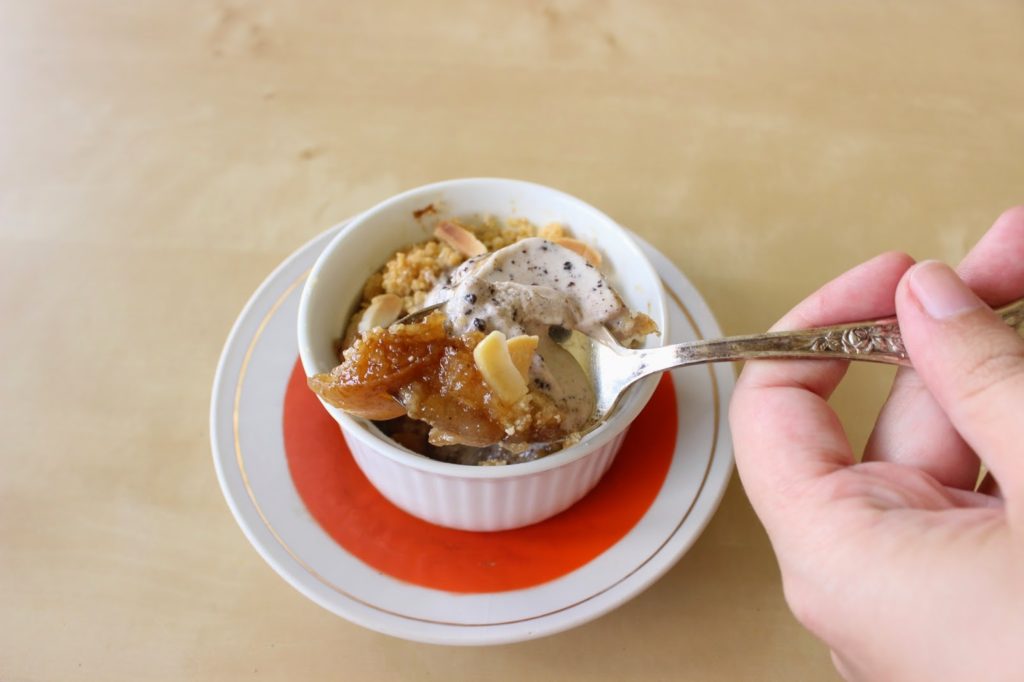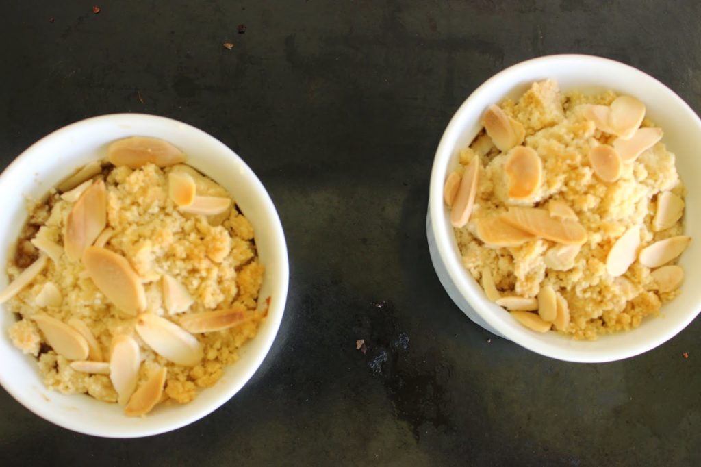 אגב, יתרון/חסרון של הקרמבל האישי הזה הוא העובדה שיוצאות ממנו שתי מנות (אמורה לצאת מנה אחת, אבל מפה לשם יצאו שתיים): בדיוק מספיק לכם ולעוד מישהו, כקינוח של ארוחה שווה, או סתם כי יום שבת.