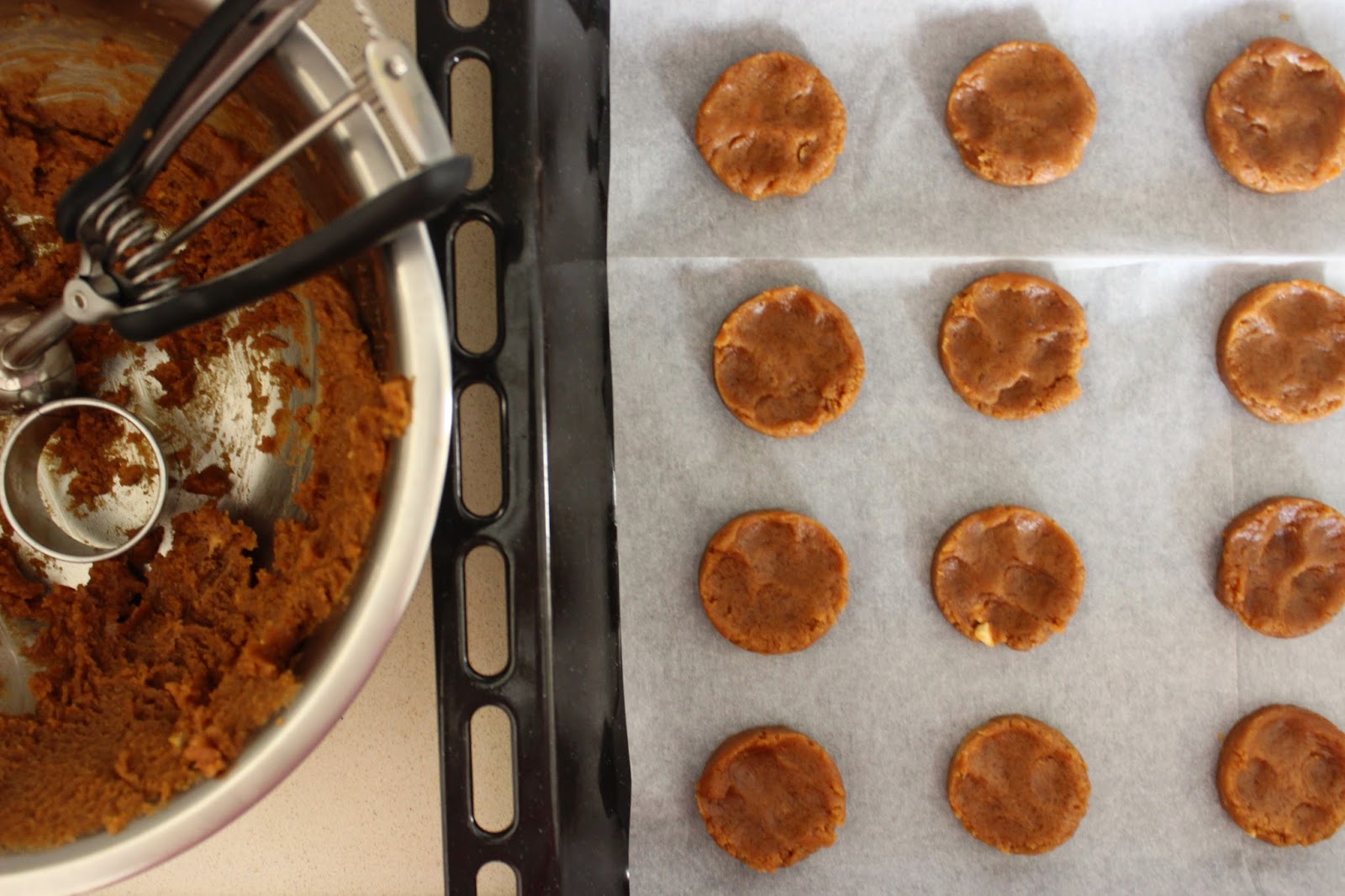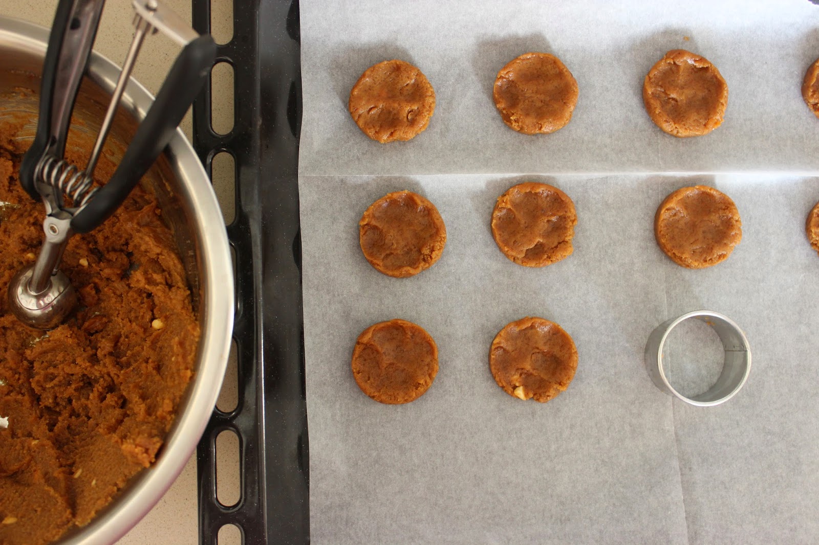- חוץ מזה, בתמונות אפשר לראות שבמקור גם הנחתי כל עוגיה בתוך חותכן עגול כדי לשמור על גודל וצורה אחידים. בפעם השניה כבר הסתפקנו רק בכף גלידה, ויצא מעולה. בכל מקרה, זה לא קריטי, רק אם אתם ממש רוצים עוגיות סופר אחידות (דבר שגם ככה לא קרה אצלי..).