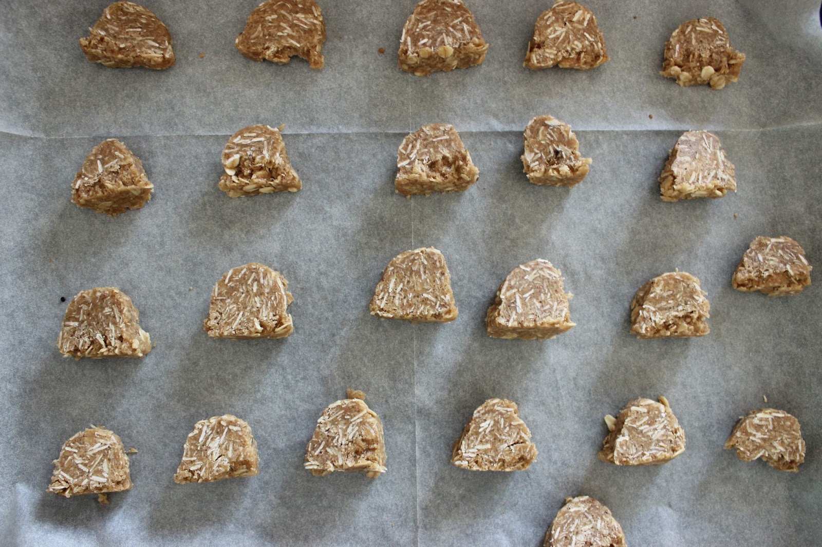 5. יוצרים כדורים עם הידיים או בעזרת כף גלידה קפיצית ומניחים בתבנית. שומרים על מרווח של 3-4 ס”מ בין העוגיות.