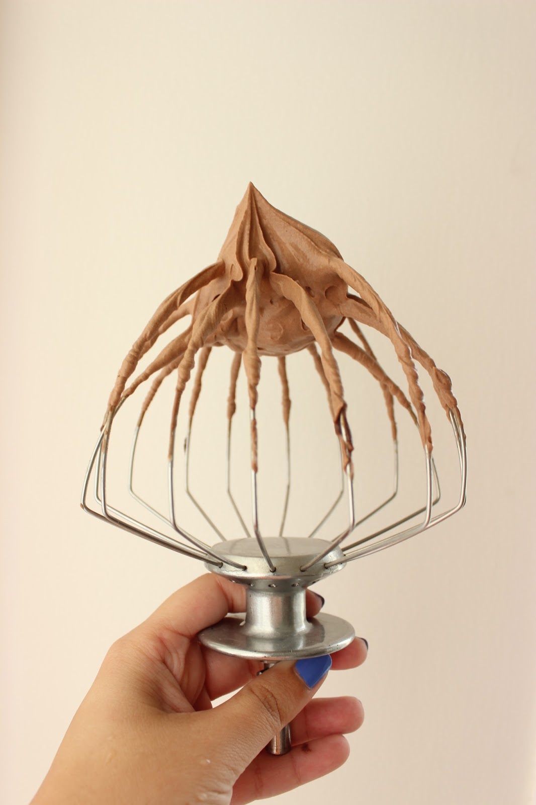 12. מסיימים להכין את הקרם: מניחים את הגנאש הקר בקערת המיקסר יחד עם 250 מ”ל נוספים של שמנת מתוקה. מחברים וו בלון ומקציפים עד לקבלת גנאש מוקצף יציב מאד.