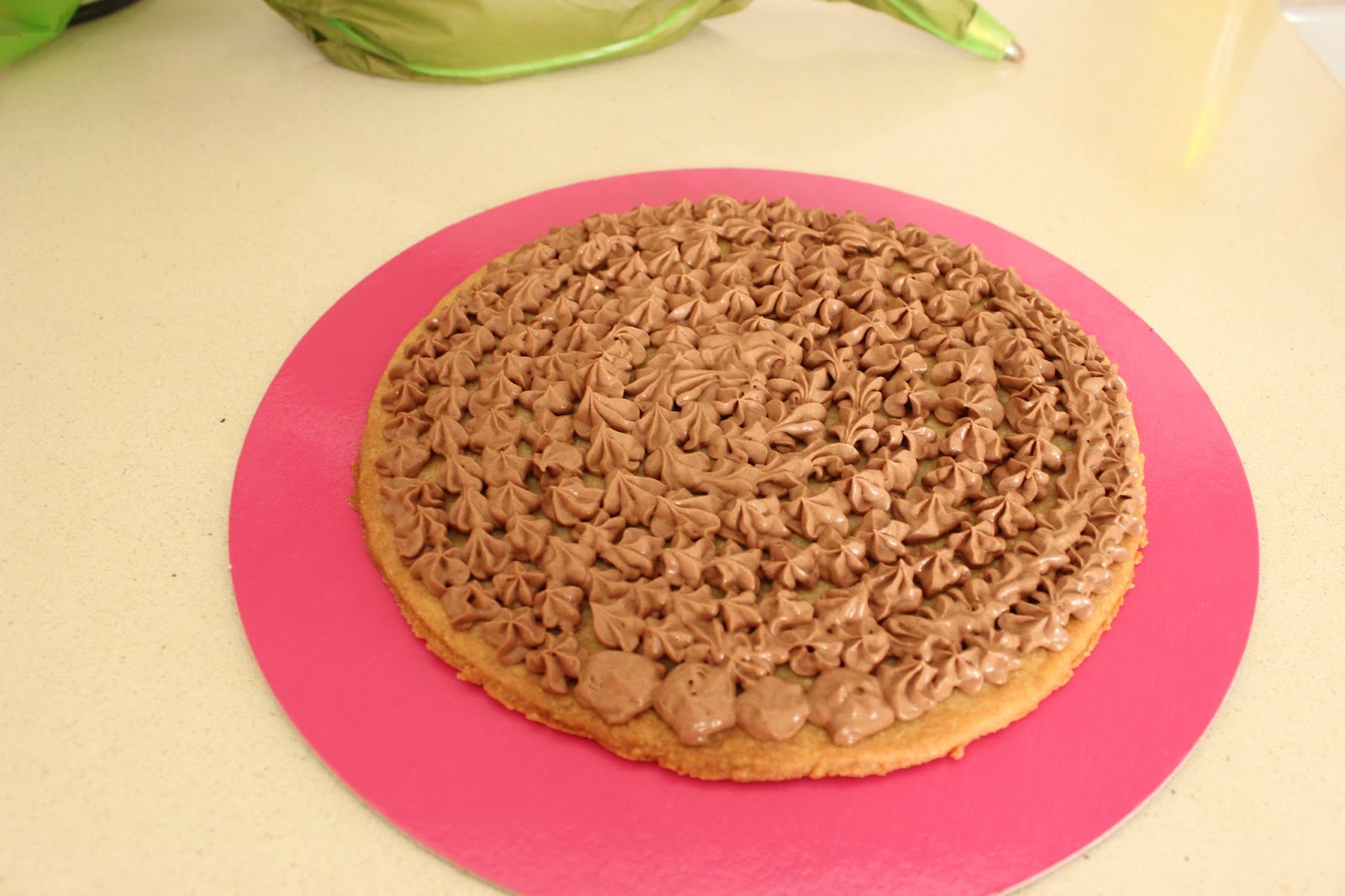 כמות: עוגת ארבע שכבות בקוטר 20 ס”מ (התכוונתי להכין קוטר 18, ובטעות השתמשתי ברינג בקוטר 20.. קיצור, גם 18 יעבוד). לחילופין, אפשר להכין עוגה תלת שכבתית בקוטר גדול יותר, נניח 24 ס”מ.