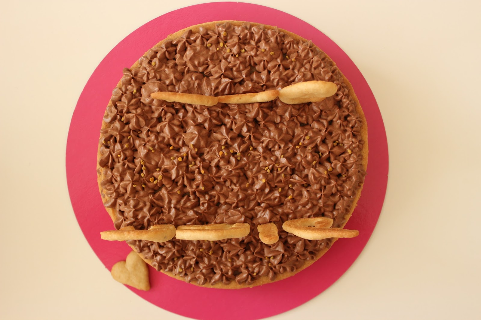 • אני קישטתי את העוגה במעט בי פולן (דיברתי על זה קצת פה) ובעוגיות “שנה טובה” שהכנתי משאריות הבצק. אבל בינינו? אם מזלפים יפה – ואתם תזלפו יפה! – את הקרם, אין באמת צורך בקישוטים נוספים.